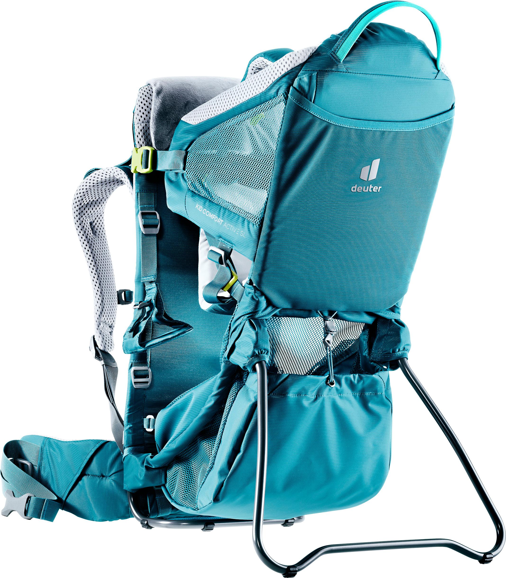 Praktische Kraxe mit speziell auf die weibliche Anatomie abgestimmten schmaleren Schulterträgern und konischen Hüftflossen; schnelle VariQuick-Rückenlängen-Anpassung mit großer Bandbreite; kippstabiler Aluminium-Rahmen; schlanke, ergonomische Hüftflossen mit 1 RV-Tasche; Hüftgurt mit PullForward-Verstellung; Lageverstellriemen; regulierbarer Brustgurt; großes, elastisches und belüftetes Netzfach unterm Sitz mit schnellem Schnürzug-Verschluss und Haken; 1 große, elastische Front-Tasche; Schlüssel-Clip; Standfuß mit spürbarer Einrastfunktion; altersgerecht variierende Polsterbreite für eine gesunde Sitzhaltung; höhenverstellbare Fußstützen; Netzeinsätze zur Belüftung des Innenraums; abnehmbares, waschbares Kinnpolster mit abnehmbarem Bezug; für den Transport zusammenklappbar größeres Kopfkissen sowie Sonnendach nachrüstbar; Gewicht: ca. 2.650 g; Maße (H/B/T): ca. 70 x 43 x 34 cm; Material 100% Polyamid.
