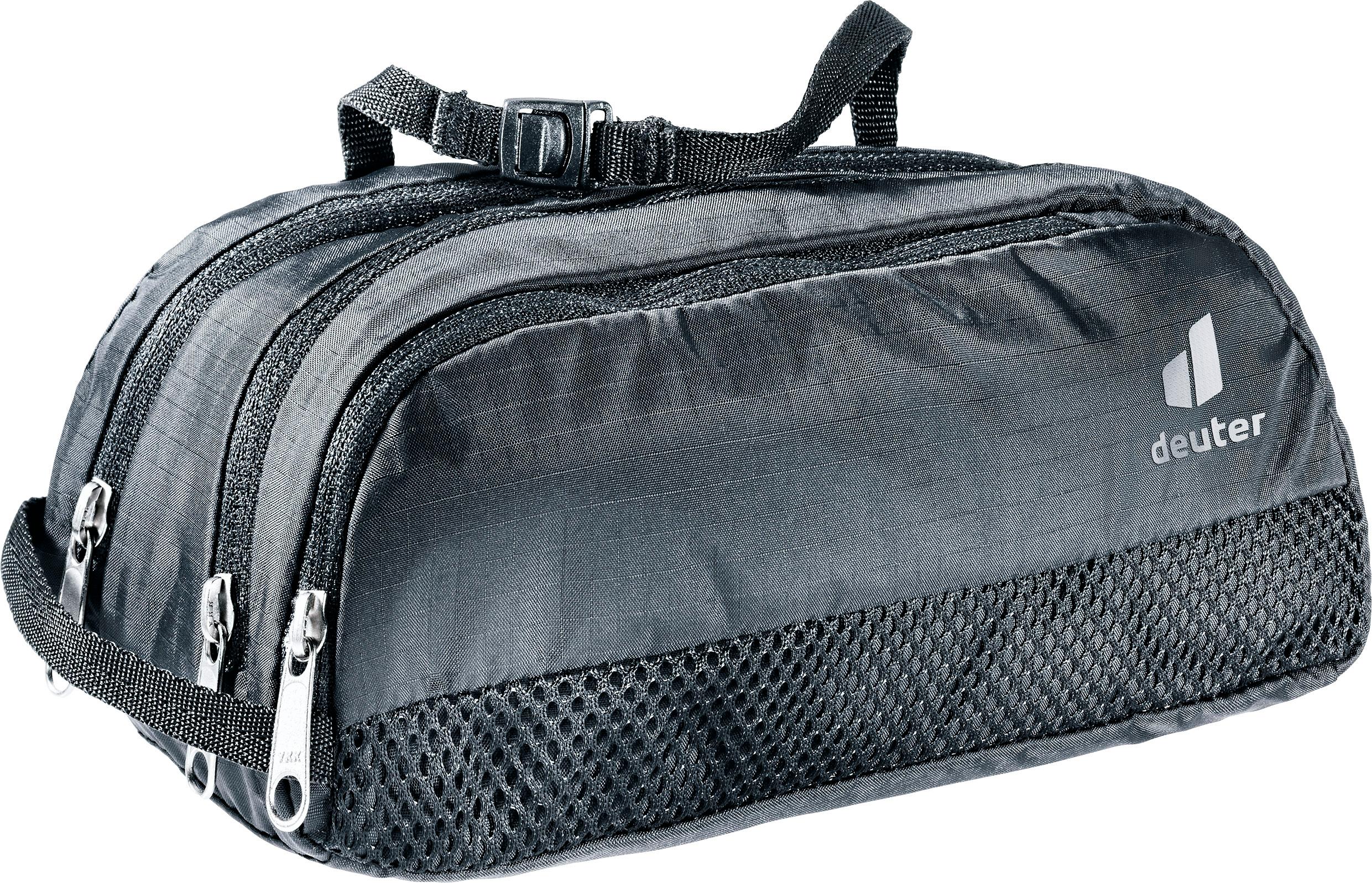 Kleiner, kompakter Kulturbeutel mit geringem Gewicht; 2 Reißverschluss-Fächer; 1 zusätzliche Netzaußentasche mit Reißverschluss; 1 Netzinnenfach; Befestigungsschlaufe mit Clip; ohne PFC hergestellt; Fair-Wear-Foundation-Produkt; Gewicht: ca. 45 g; Volumen: ca. 1 l; Maße (H/B/T): ca. 7 x 21 x 9 cm; hergestellt aus Polyamid und Polyester.
