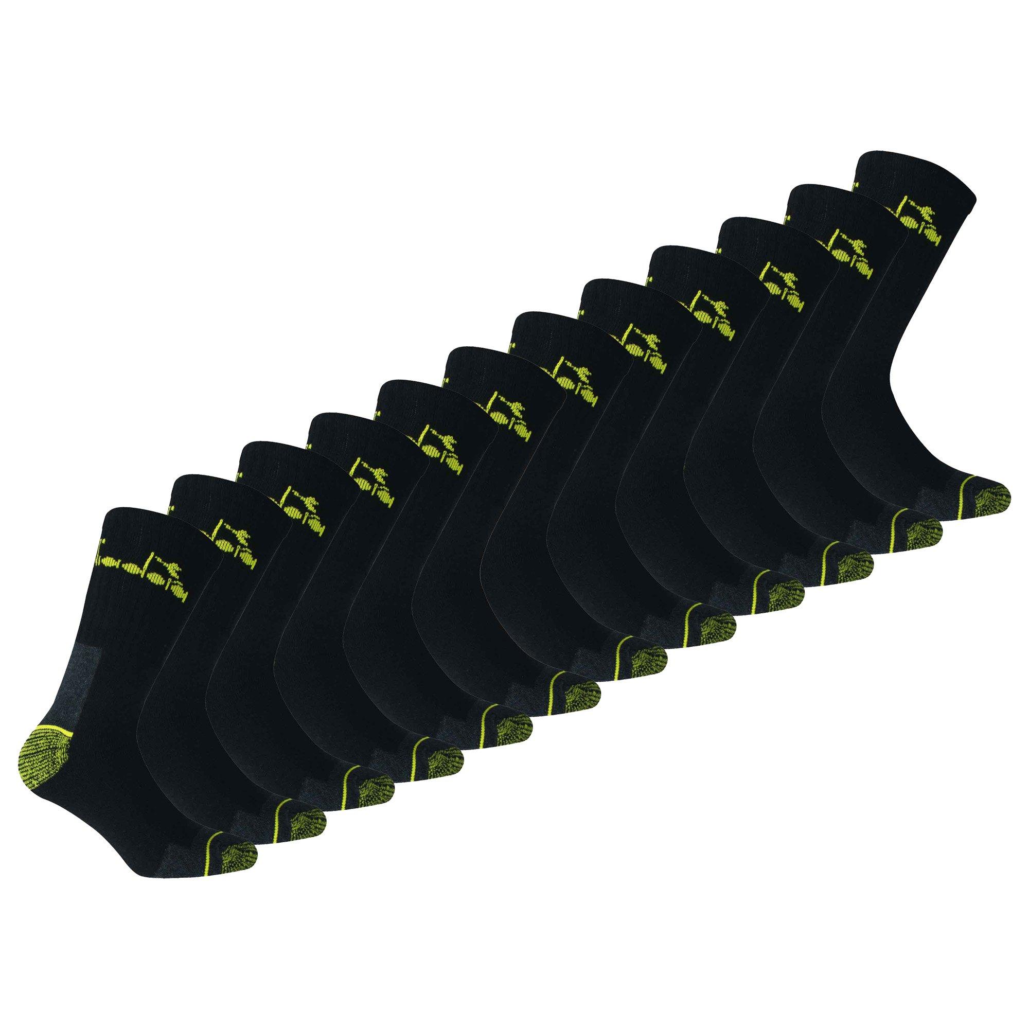 Unisex Arbeitssocken für Damen und Herren von der Marke Diadora. Im praktischen 12er Pack. Einfarbiges Modell mit Logo an der Hinterseite am Bündchen. Angenehme Baumwollmischung.
