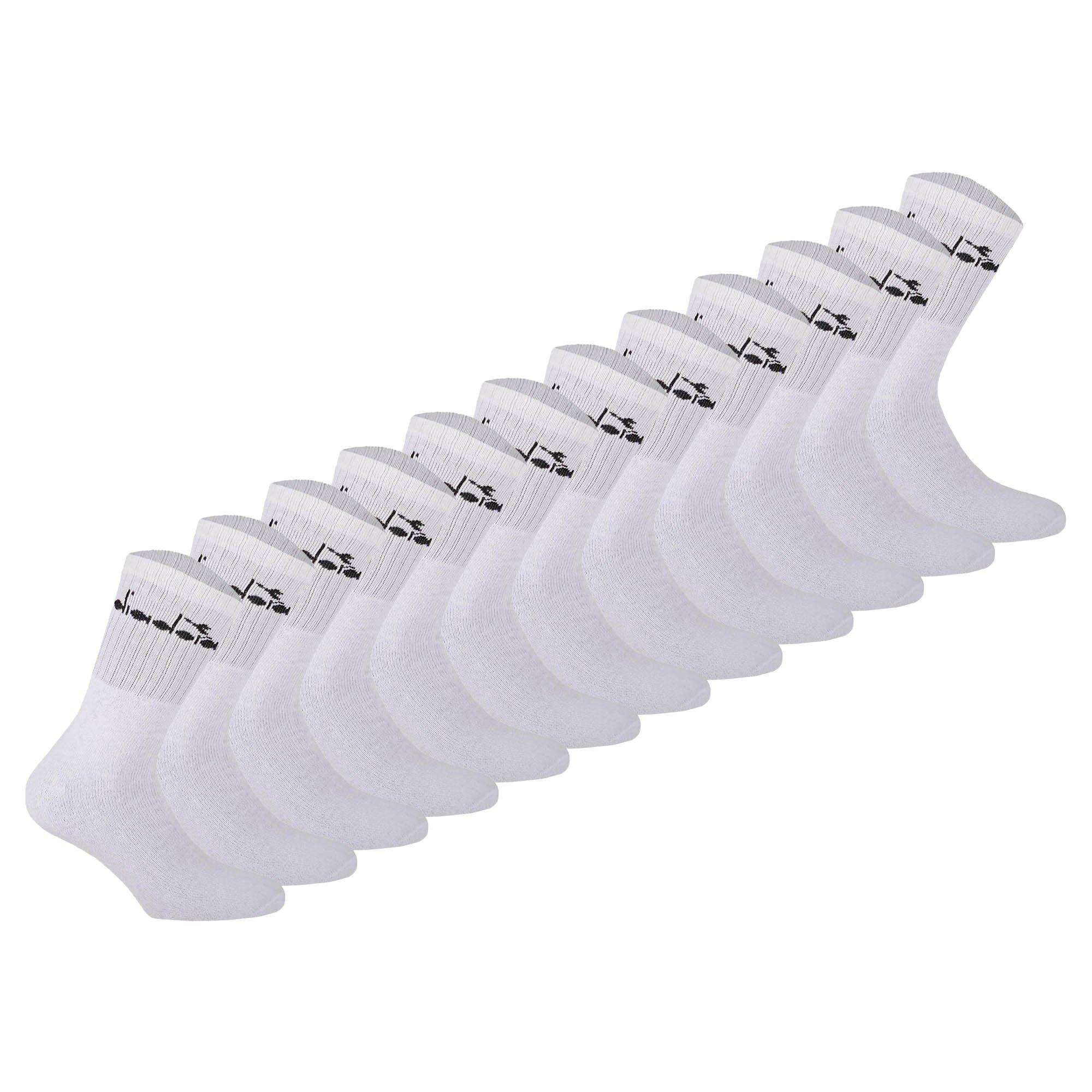 Unisex Tennissocken der Marke Diadora im praktischen Zwölferpack. Weicher, gerippter Bund für optimalen Halt mit Logo Schriftzug. Angenehmer Tragekomfort dank hochwertiger Verarbeitung optimal für den alltäglichen Bedarf.