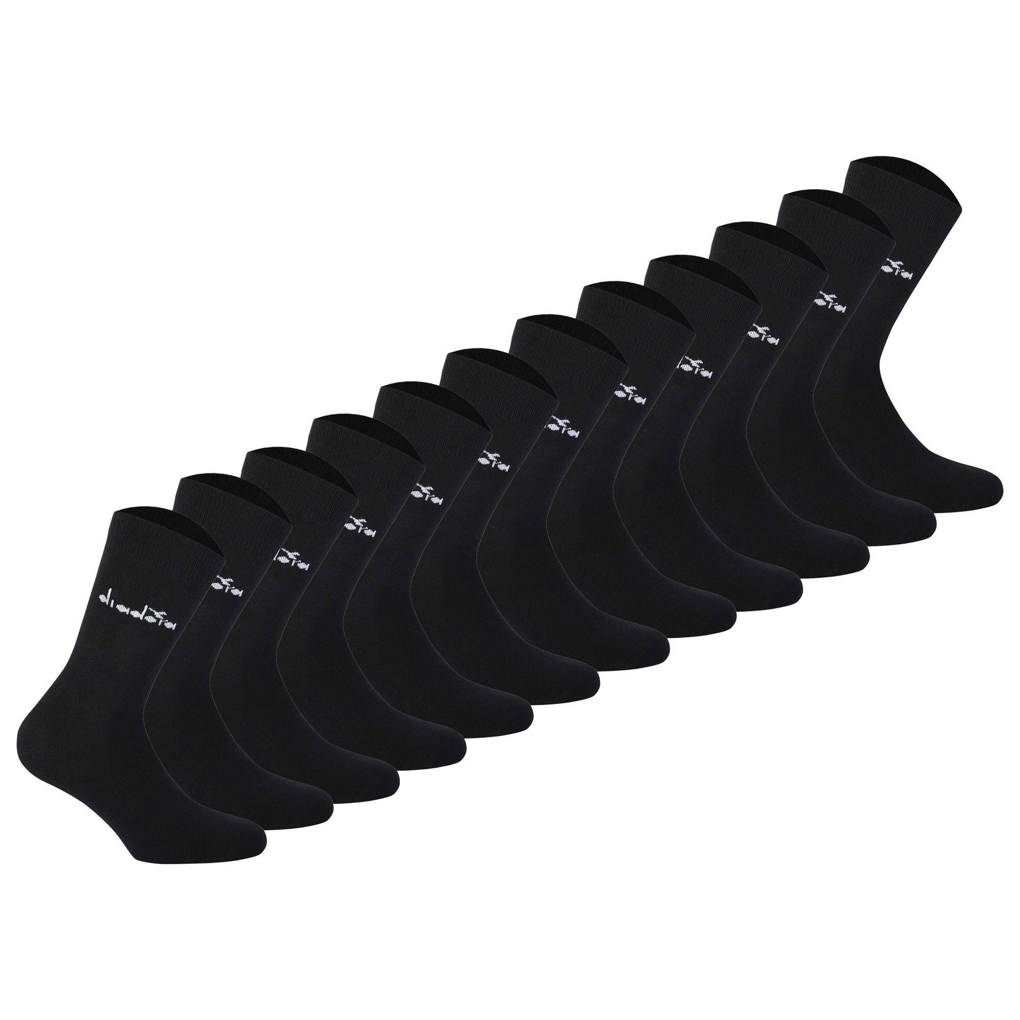 Unisex Socken für Damen und Herren von der Marke Diadora. Im praktischen 12er Pack. Einfarbiges Modell mit seitlichen Logo. Angeneheme Baumwollmischung.