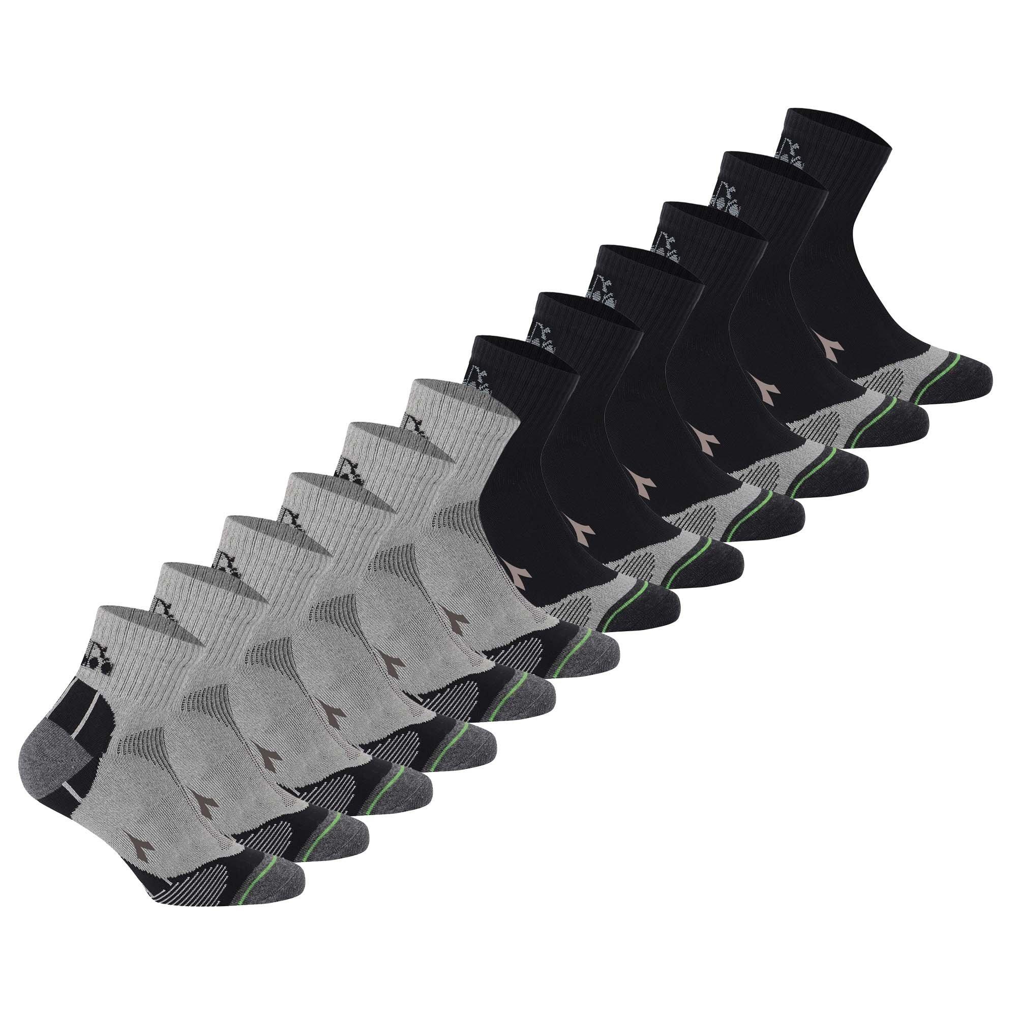 Unisex Sportsocken für Damen und Herren von der Marke Diadora. Im praktischen 12er Pack. Einfarbiges Modell mit Muster an der Ferse und an der Spitze. Angenehmer Tragekomfort.