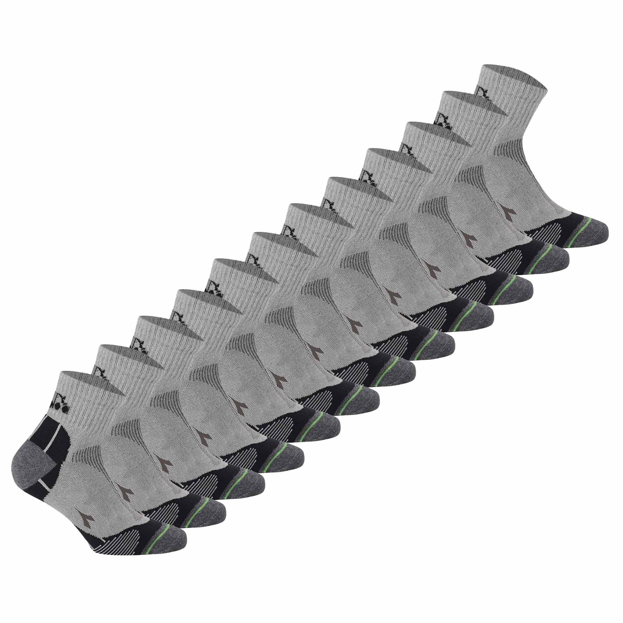 Unisex Sportsocken für Damen und Herren von der Marke Diadora. Im praktischen 12er Pack. Einfarbiges Modell mit Muster an der Ferse und an der Spitze. Angenehmer Tragekomfort.