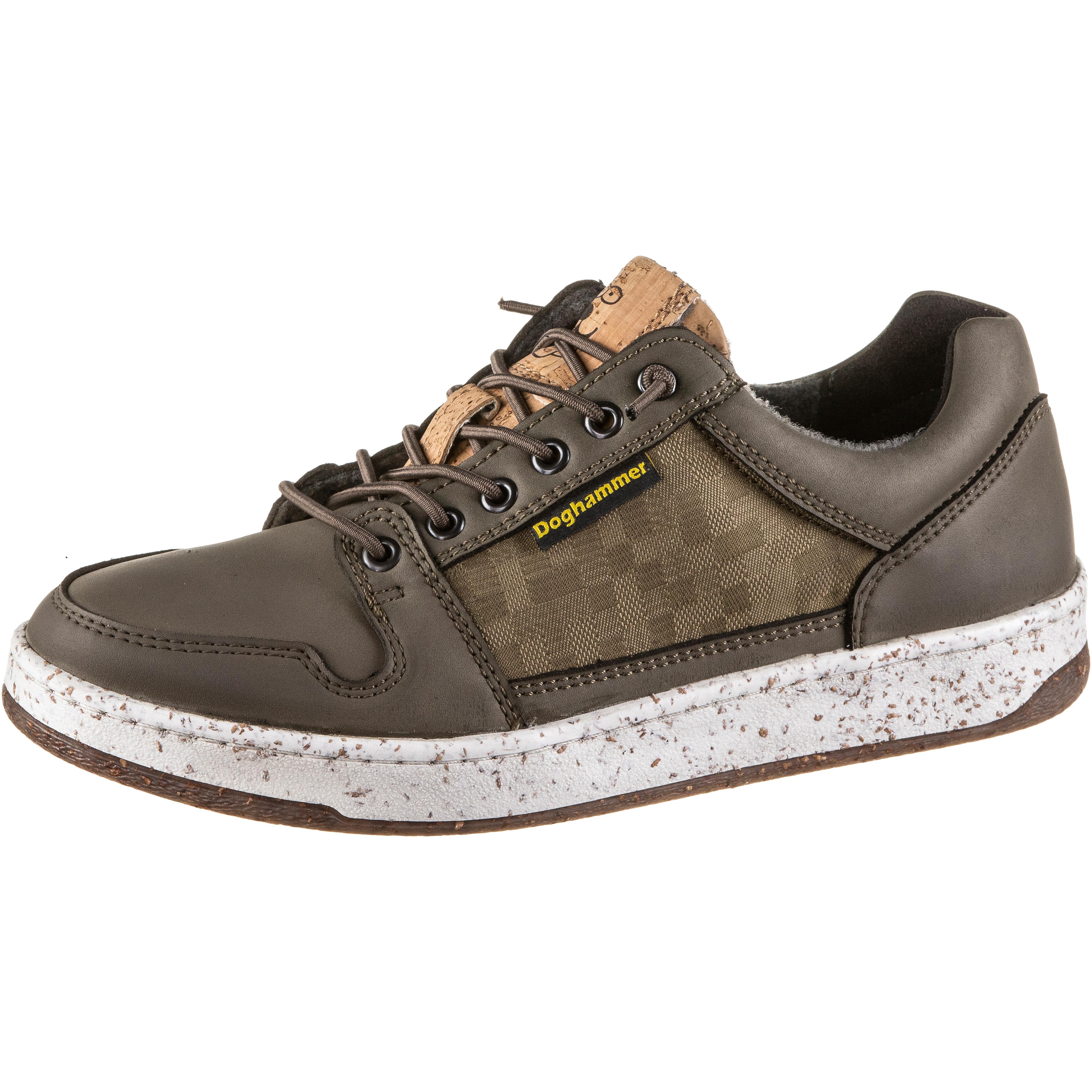 Warm gefütterte Sneaker mit wasserabweisender Beschichtung; robust und atmungsaktiv; Obermaterial aus Textil und veganem Leder; hergestellt aus recycelten PET-Flaschen und Meeresplastik; elastische Schnürsenkel; Fleecefutter; komfortables, herausnehmbares Fußbett aus recyceltem Kork; leicht profilierte Außensohle aus Gummi und Kork; Made in Europe.