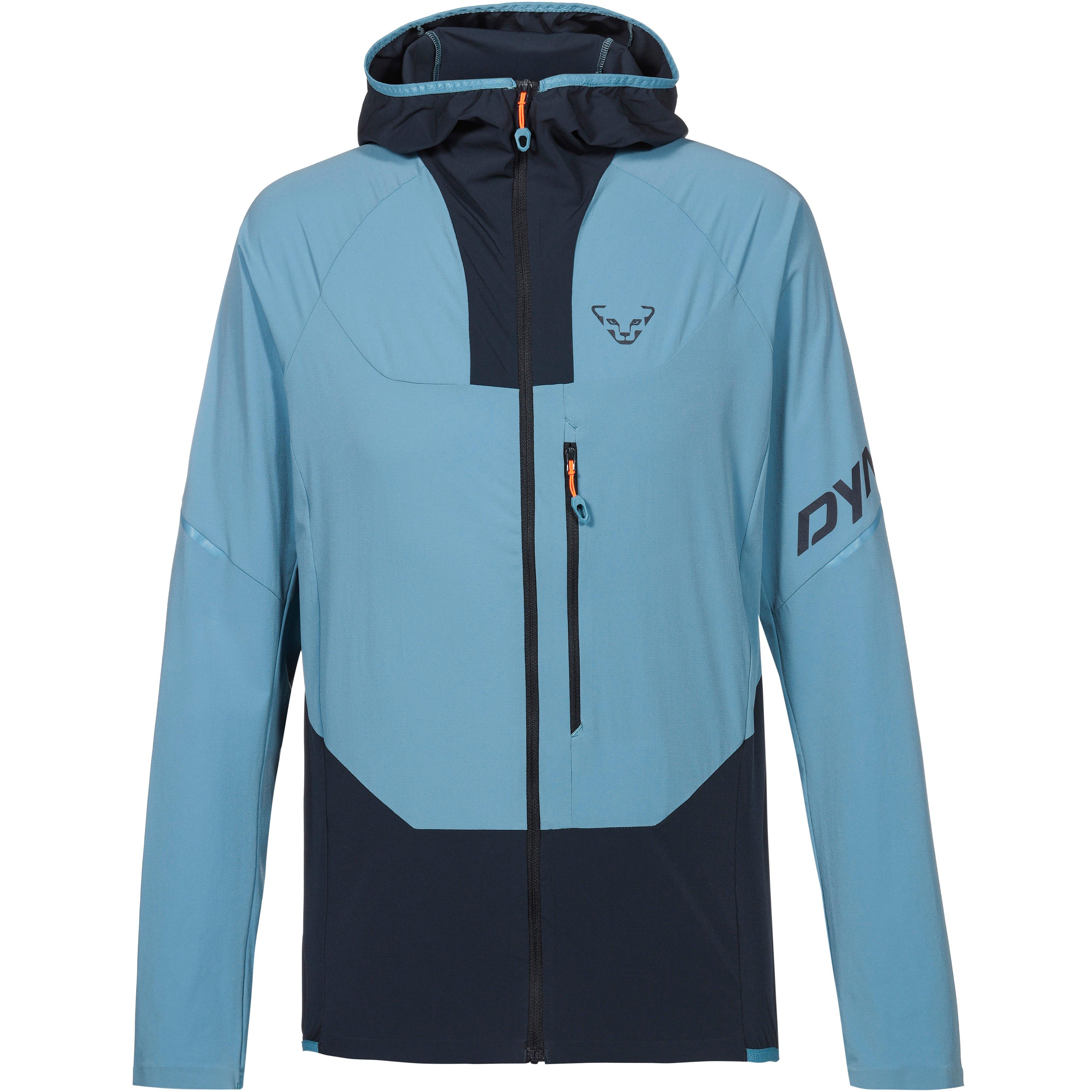 Leichte Softshelljacke im Colourblock-Design; elastisch; winddicht; wasserabweisend; atmungsaktiv; feste Kapuze; Kinnschutz am Kragen; 1 Brusttasche mit Reißverschluss; Frontreißverschluss; Raglanärmel; Abschlüsse mit schmalen Elastikbündchen; Material 100% Polyamid.