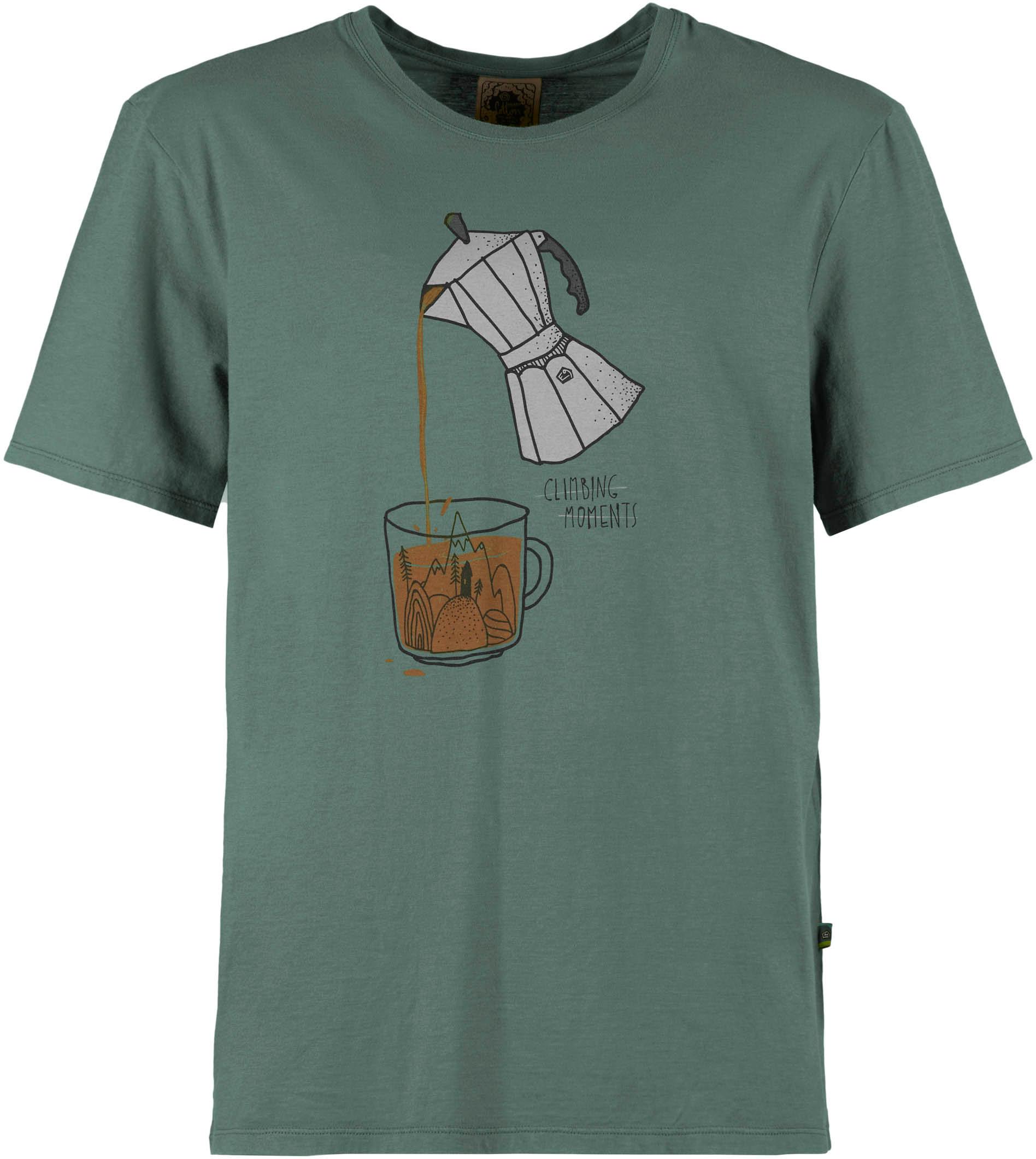 Baumwoll-T-Shirt mit großem Frontprint; ideal für bergsteigende Kaffeeliebhaber; Rundhalsausschnitt mit Nackenband; normale Passform; Made in Italy; Material 100% Baumwolle.