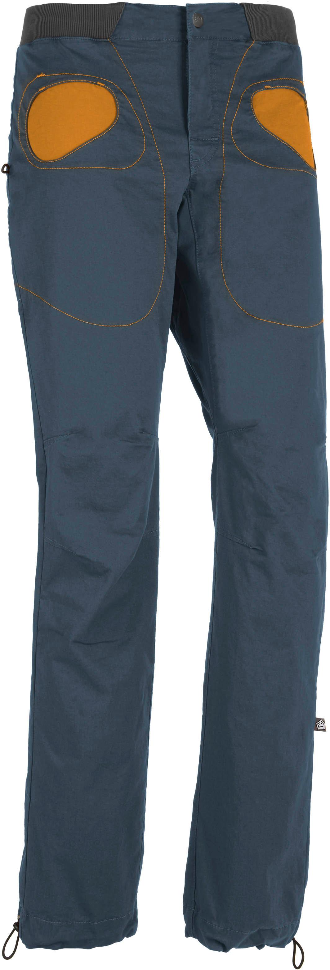 Lange Kletterhose aus strapazierfähigem Material; teilelastischer, gerippter Bund mit Kordelzug auf der Innenseite; Knopf und Reißverschluss; 2 große Seitentaschen und eine Gesäßtasche mit kontrastfarbener Innenseite; ergonomische Schnittführung im Kniebereich; Beinabschlüsse per Gummizug verstellbar; Made in Italy; Material 96% Baumwolle (Biobaumwolle), 4% Elastan.