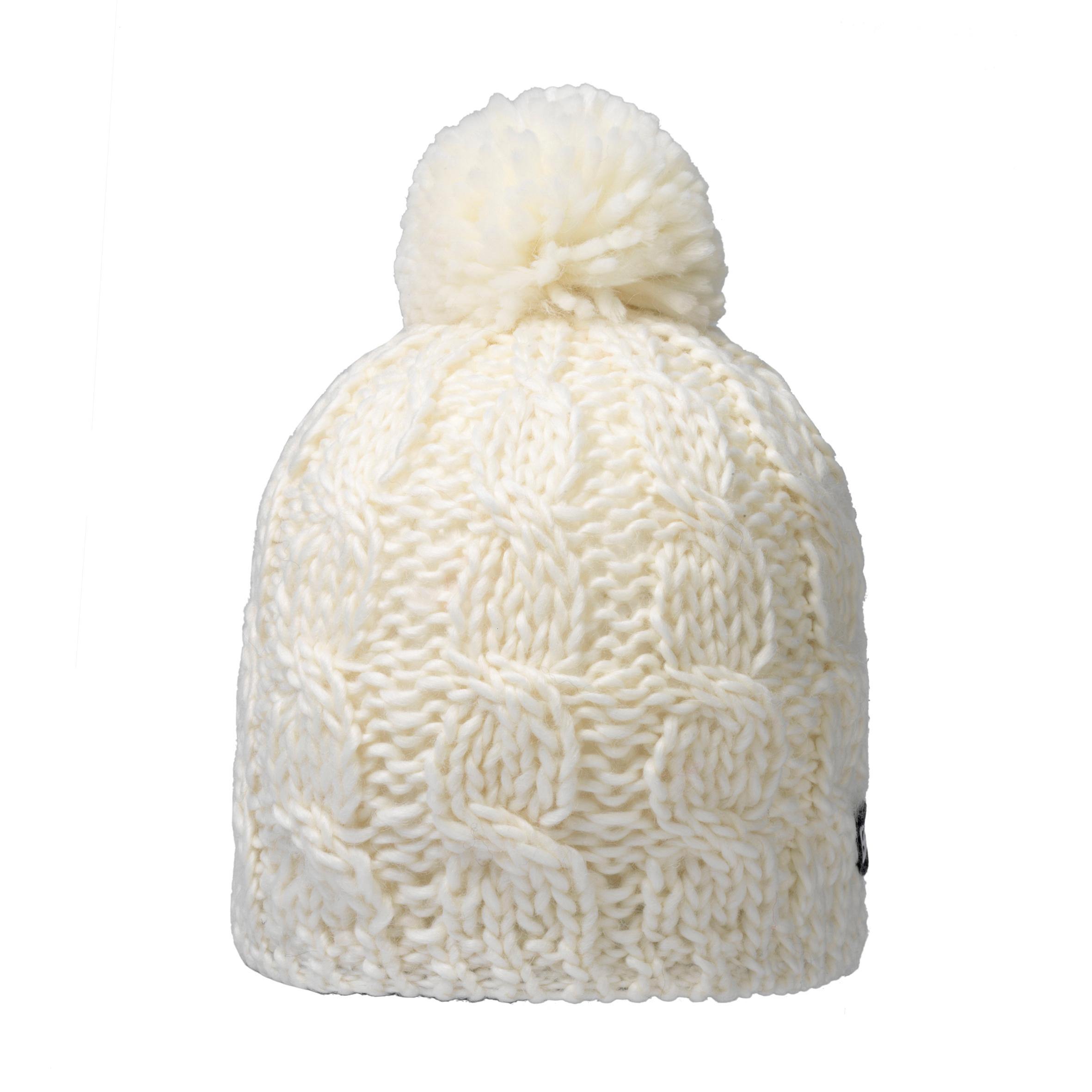 Eisbär ANTONIA. Mütze mit Bommel und Zopfmuster, grob gestrickt; innen ist die Strickmütze zusätzlich mit einem breiten, wärmenden Stirnband aus Fleece-Material ausgestattet; außen mit Eisbär Logo-Applikation; Obermaterial: 50% Wolle, 50% Polyacryl; Besatz: 100% Polyester.