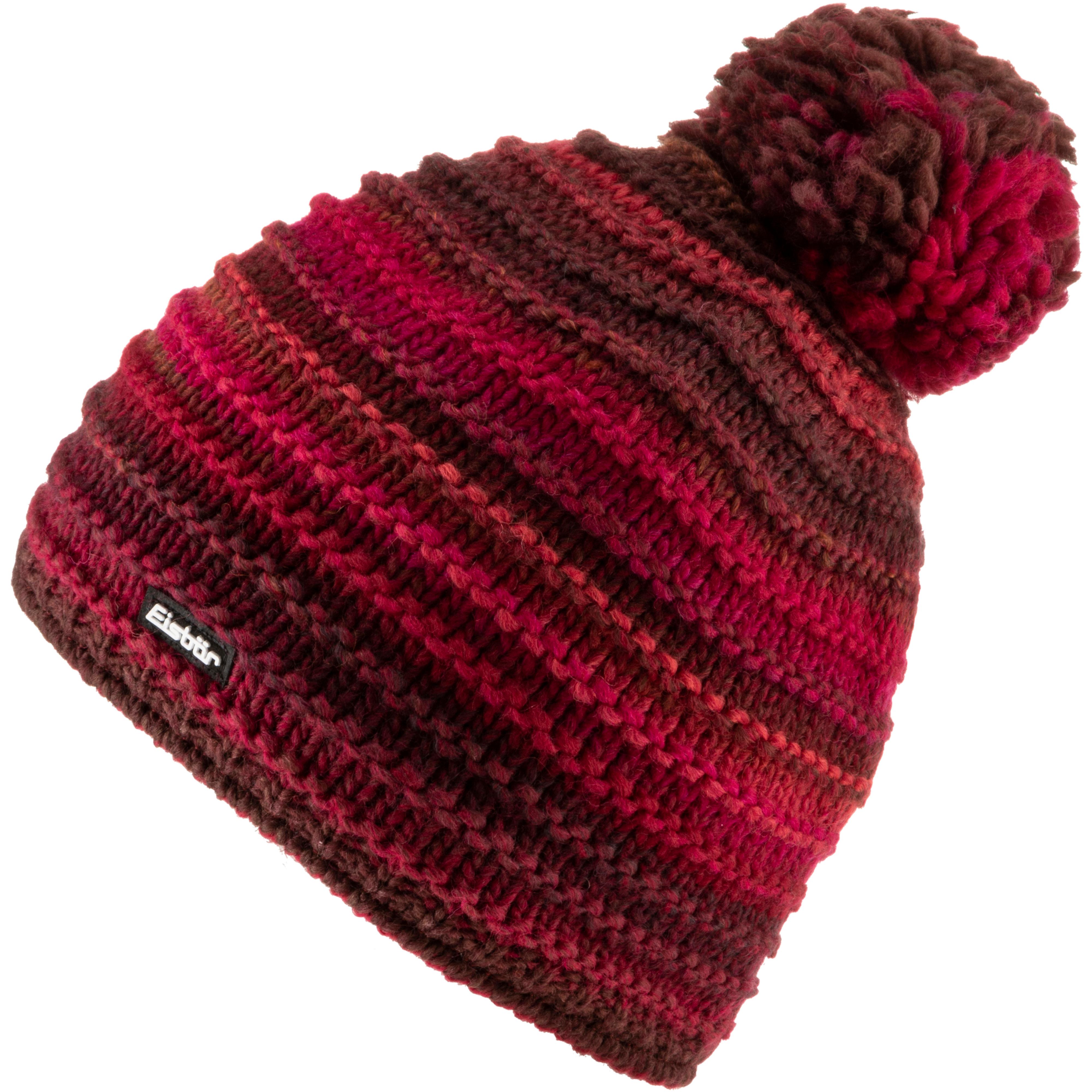 Mütze aus wärmendem Grobstrick, mit modischem Bommel; weich wärmendes Fleecefutter; Material I 100% Polyester, Material II 53% Schurwolle, 47% Polyacryl.