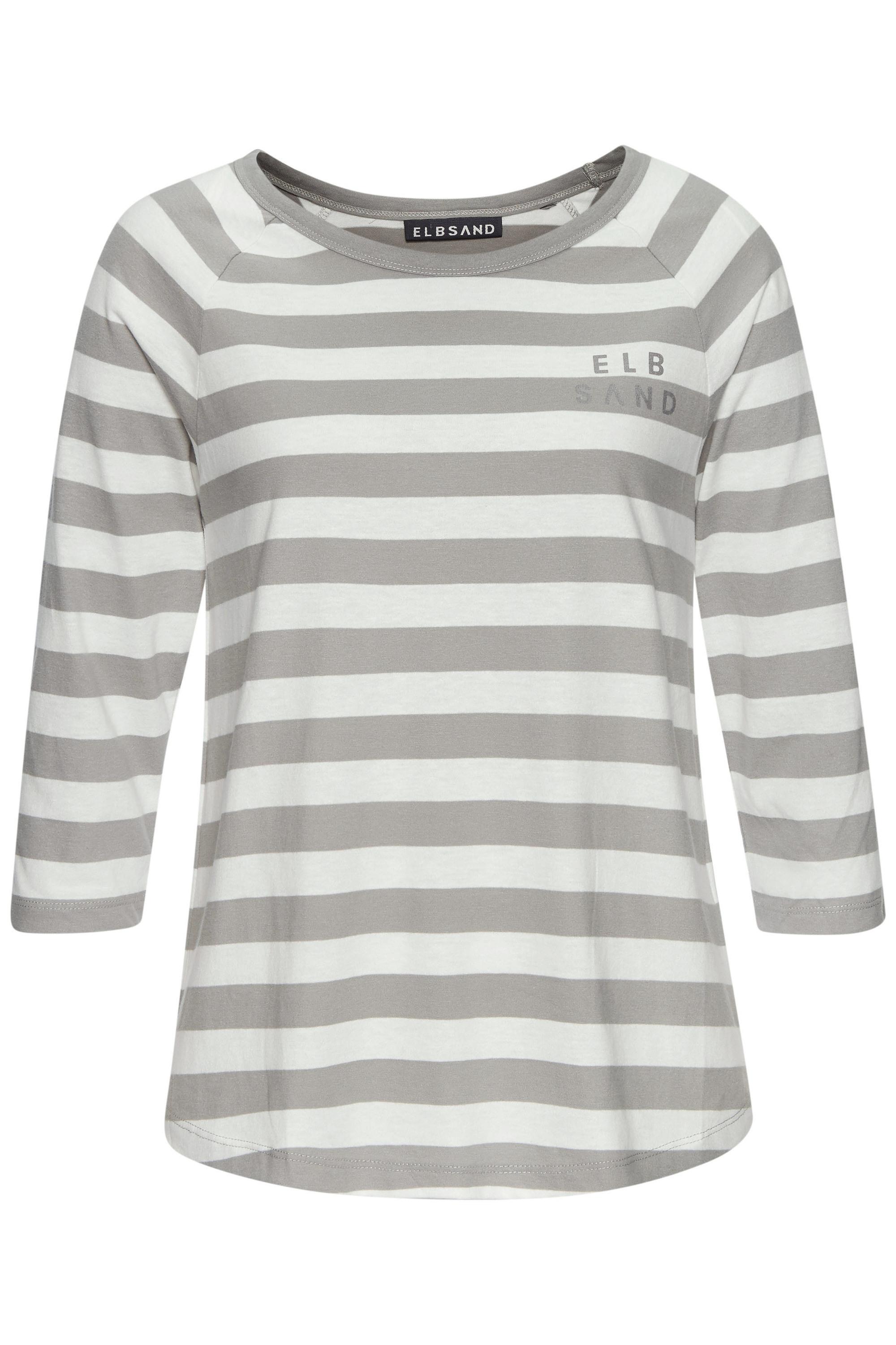 ELBSAND 3/4-Arm-Shirt Longshirt Damen creme-taupe gestreift