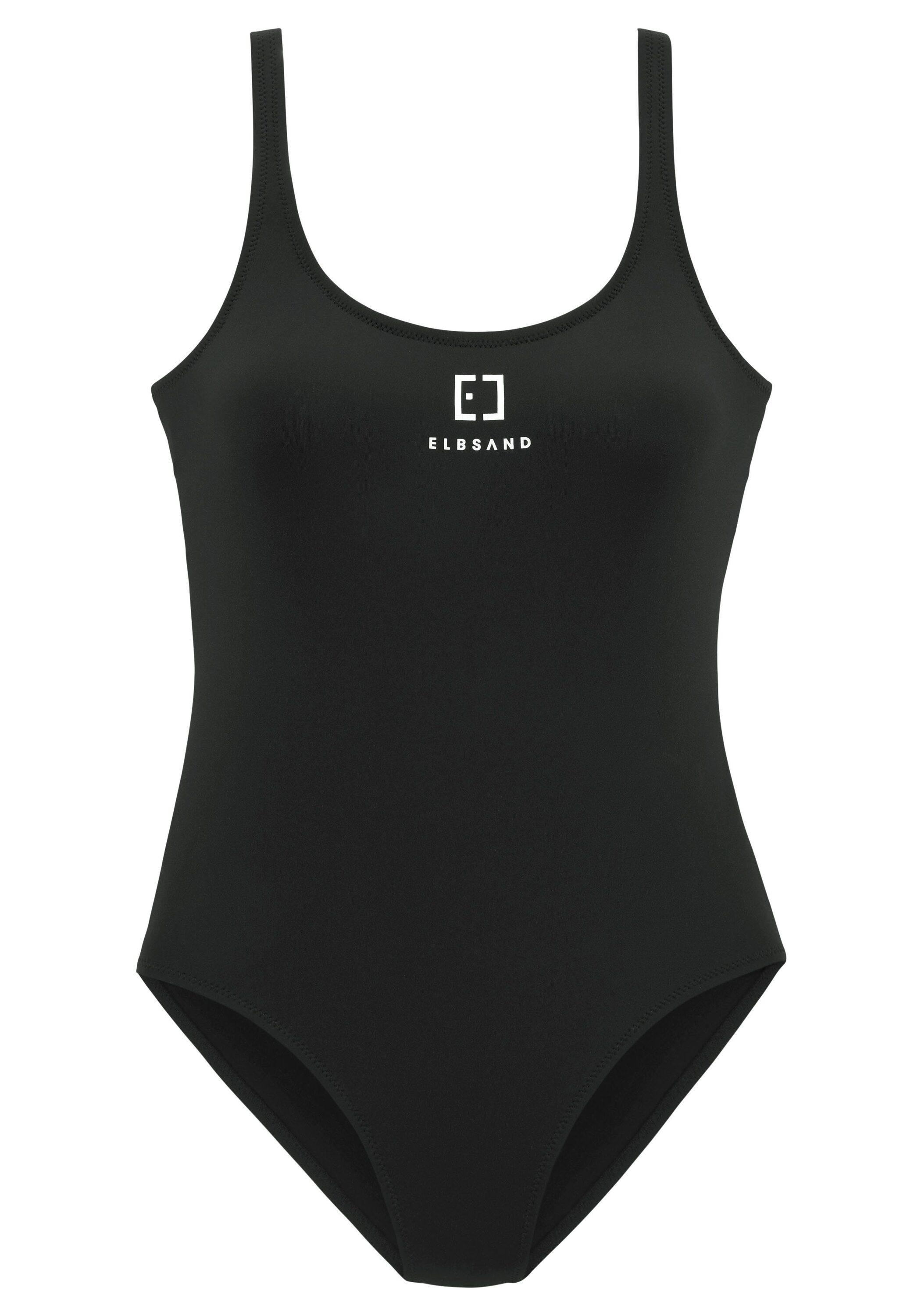 Sportlicher Badeanzug von Elbsand. Raffinierte Rückseite: elastisches Band, mit Logoschriftzug verziert. Formende Cups, herausnehmbar. Für coole Strandlooks. Aus weichem, elastischem Material.