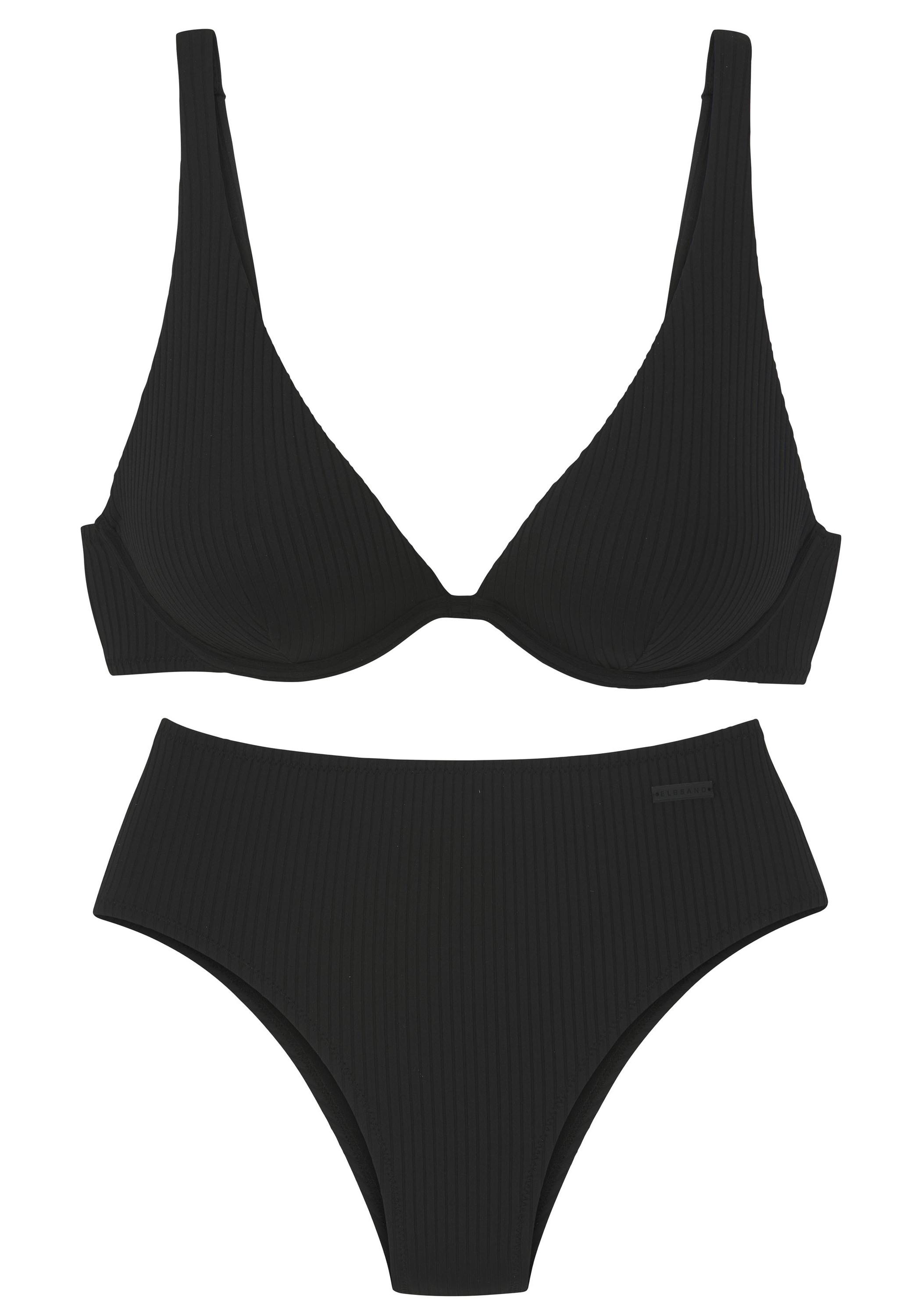 "Bügel-Bikini von Elbsand. Unifarbenes Design. Modische Rippstruktur. Top mit herausnehmbaren Softcups und verstellbaren Trägern. Hose mit höherem Beinausschnitt und kleinem Emblem. Strukturiertes Material."