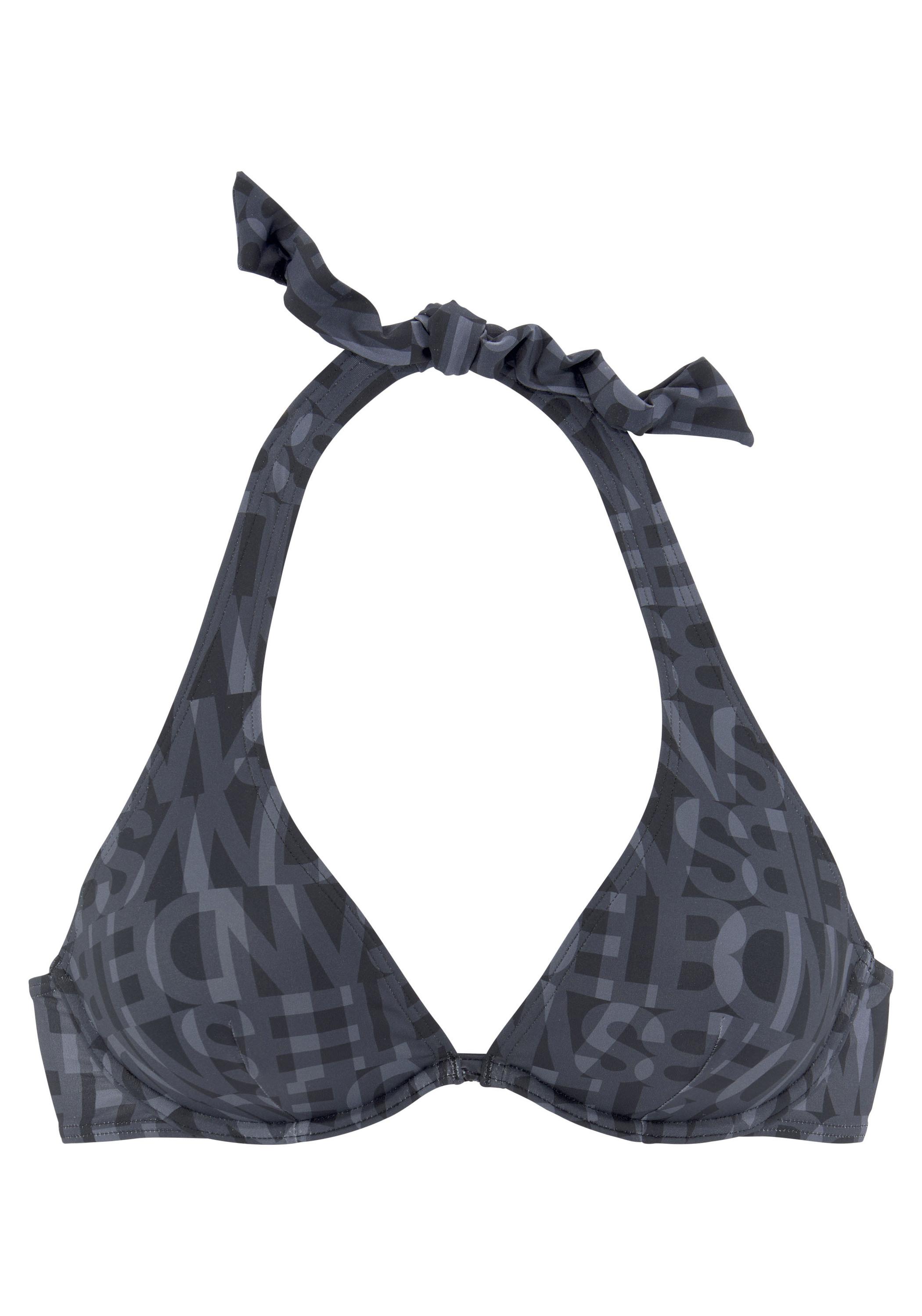 Bügel-Bikini-Top von Elbsand mit modischem Marken-Alloverprint. Cups mit formgebenden Bügeln und herausnehmbaren Einlagen. Breites Necklace zum Binden. Aus der Mix-Kini-Serie. Recycelte Microfaser.