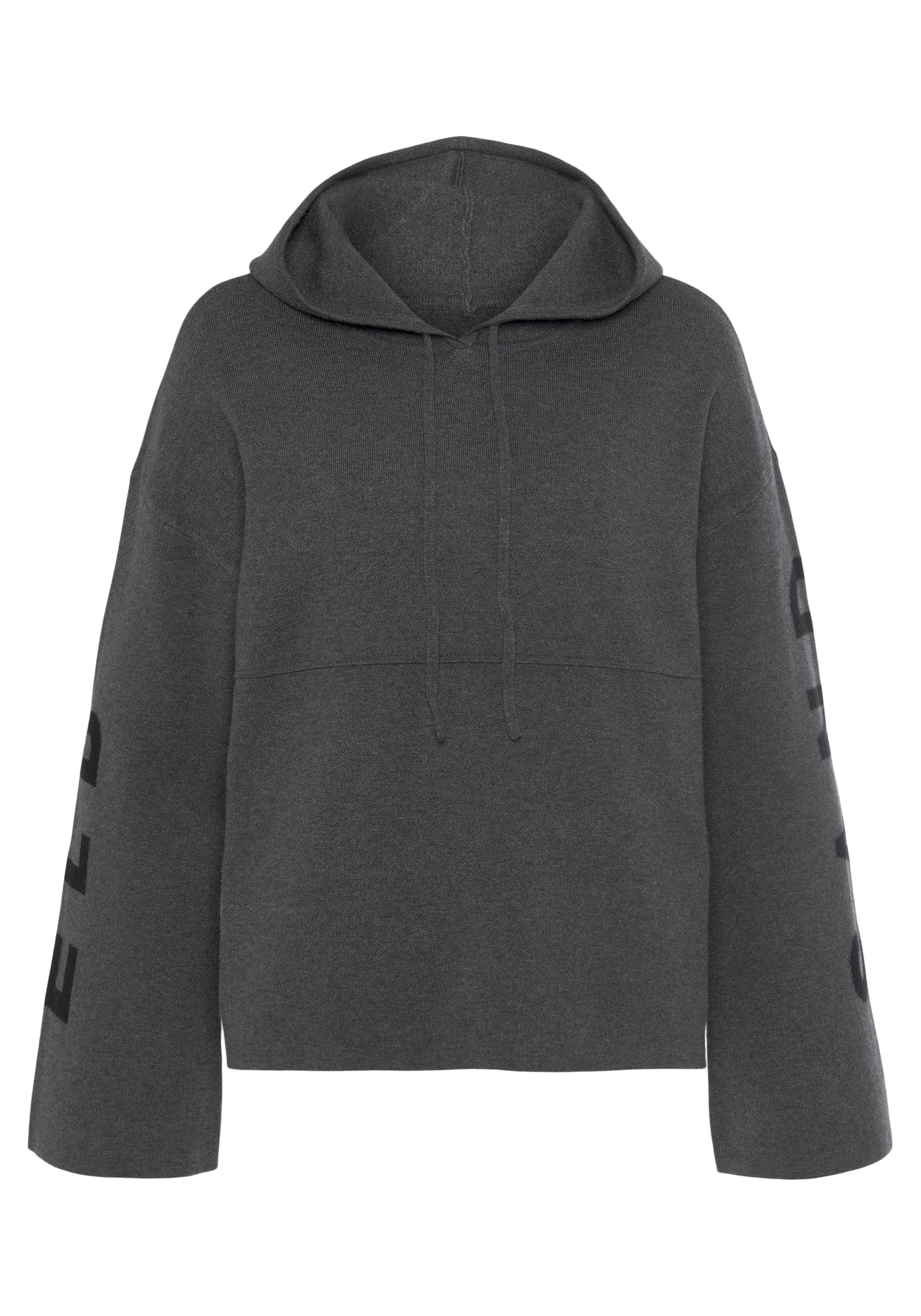 Lässiger Strick-Hoodie von Elbsand mit Markenschriftzug entlang der Trompetenärmel. Gefütterte Tunnelzugkapuze. Lockere Passform mit überschnittenen Schultern. Vielseitig zu kombinieren. Weiche Strickware mit Viskose.