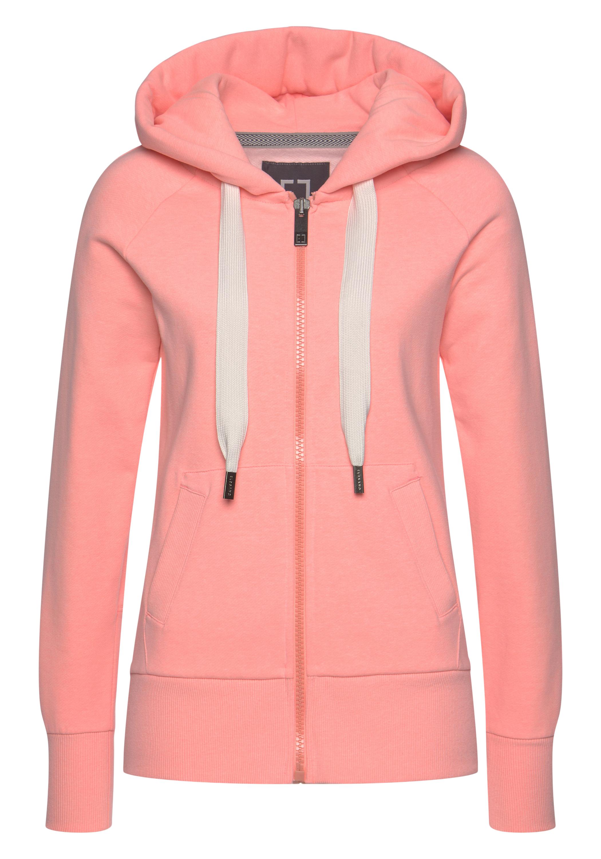 Kapuzensweatjacke "Kelda" von ELBSAND. Kapute mit Tunnelzug und breitem Logoprint. Reißverschluss vorn und Eingrifftaschen. Logo-Label auf einem Ärmel. Länge ca. 70 cm. Aus 67% Baumwolle, 33% Polyester.