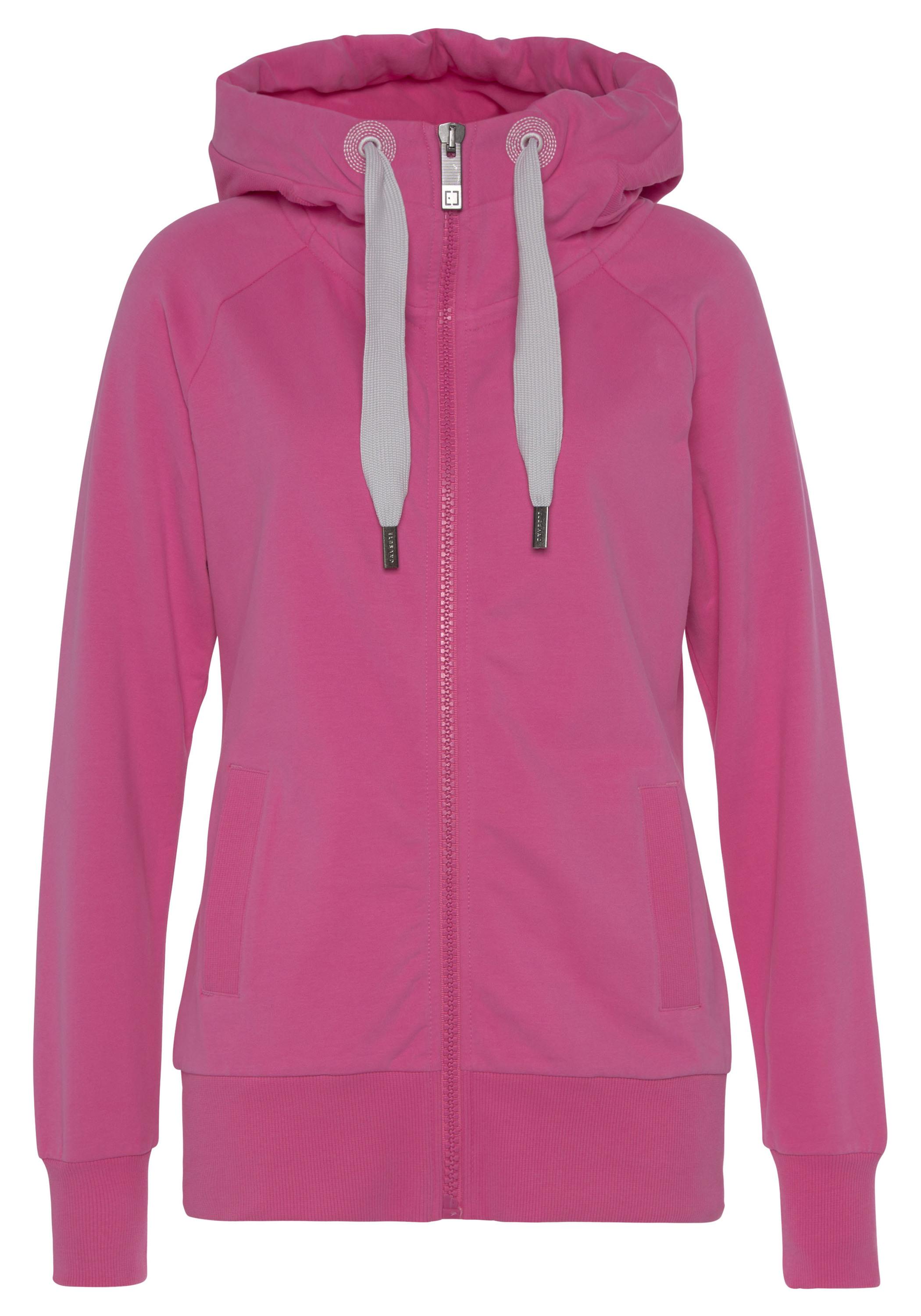 Lässige Kapuzensweatjacke von Elbsand mit Flockprint hinten. Große Kapuze mit Tunnelzug. Eingrifftaschen und breite Bündchen. Aus hochwertiger Baumwoll-Sweatware.