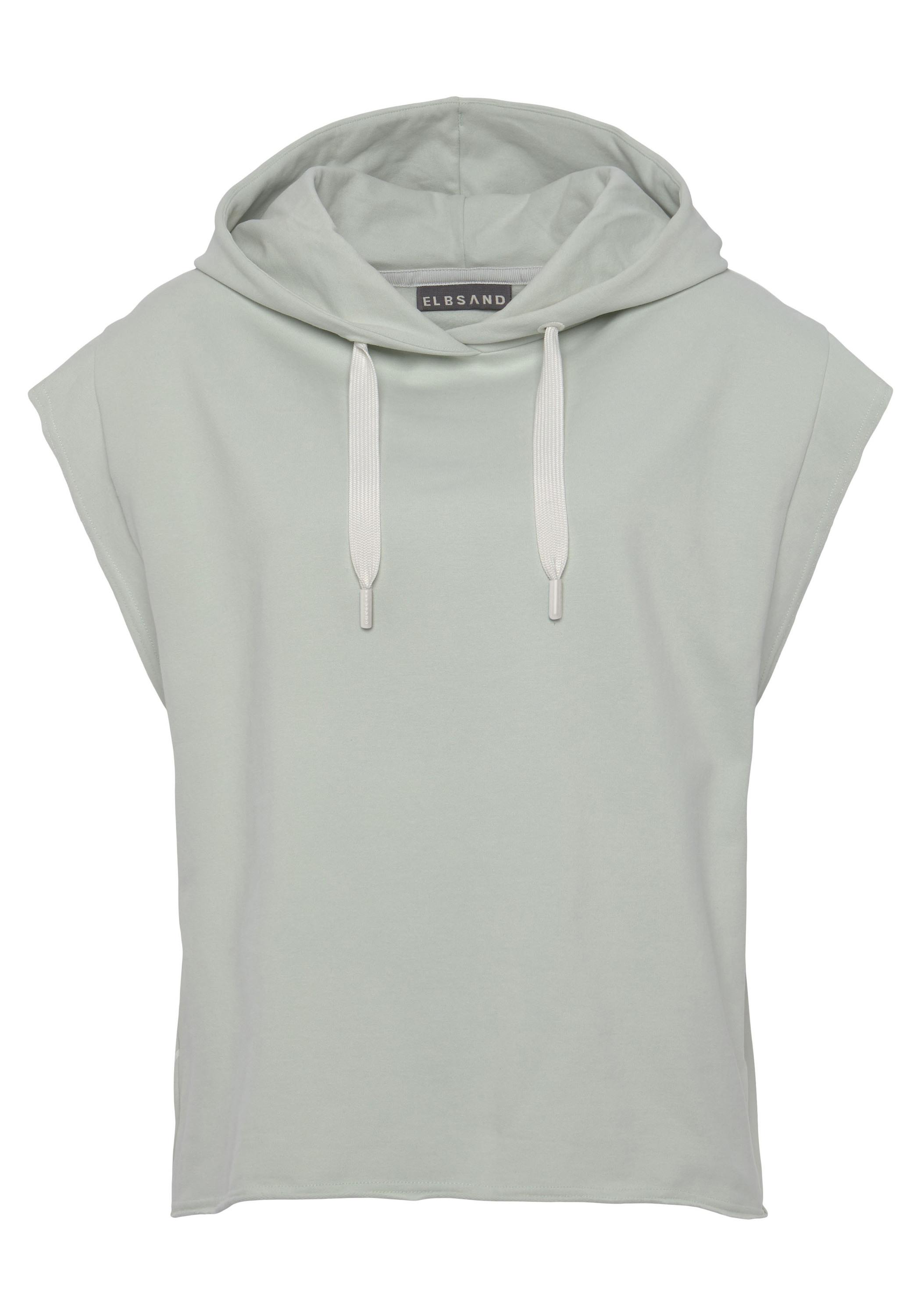 Kurzärmeliges Kapuzensweatshirt von Elbsand. Gefütterte Kapuze mit Kordelzug mit Metallenden. Überschnittene Ärmel mit tiefen Armlöchern. Logodruck hinten. Weiche Sweatware.