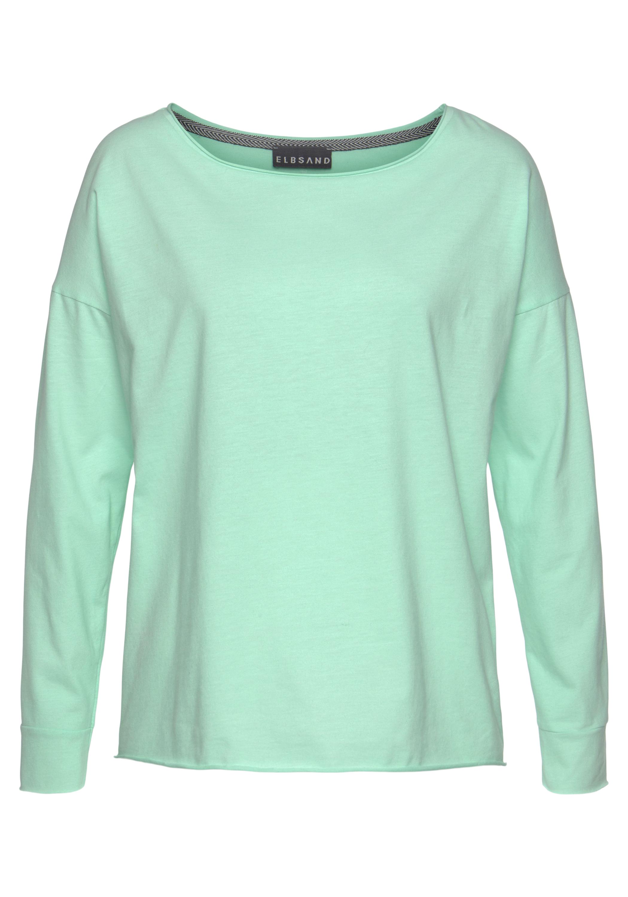 Shirt von ELBSAND mit großem Logoprint und Teilungsnaht auf dem Rücken. Überschnittene Schultern und lange Ärmel. Länge ca. 62 cm. Aus 50% Baumwolle, 50% Polyester.