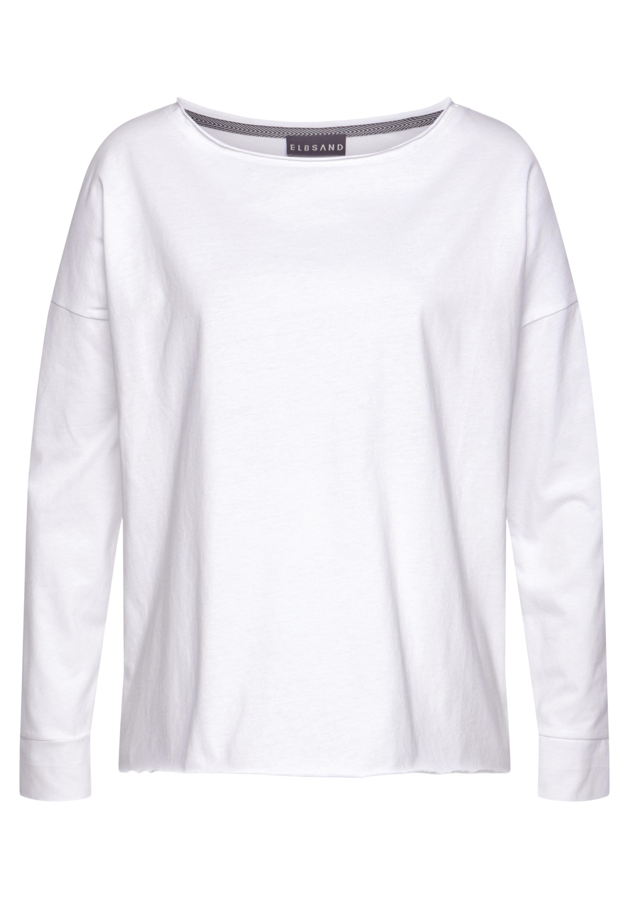Shirt von ELBSAND mit großem Logoprint und Teilungsnaht auf dem Rücken. Überschnittene Schultern und lange Ärmel. Länge ca. 62 cm. Aus 50% Baumwolle, 50% Polyester.