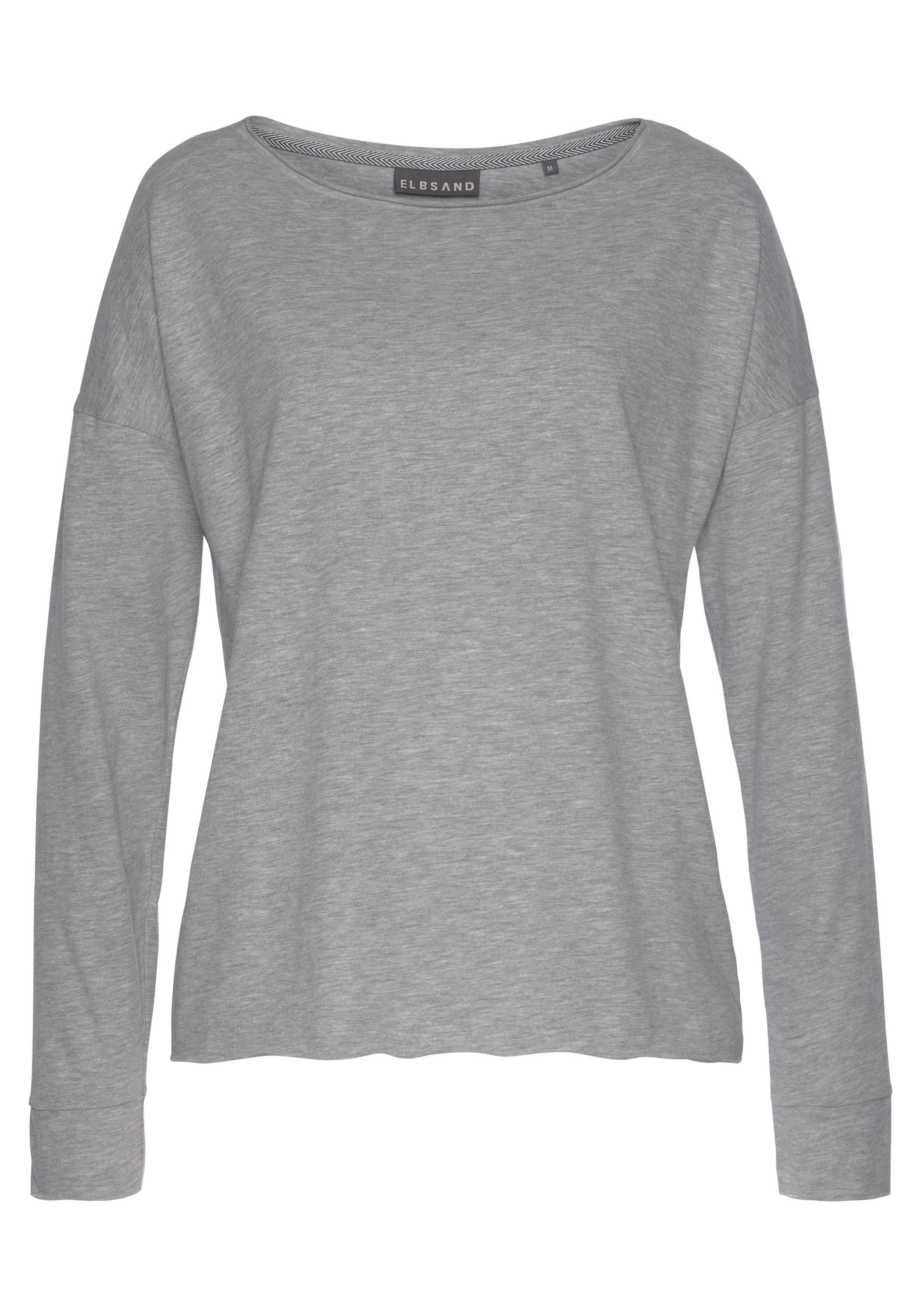 Legeres Rundhalsshirt von Elbsand mit langen Ärmeln. Rollkante. Lässig überschnittene Schultern. Rücken mit Teilungsnaht und großem Logodruck. Saumabschlüsse offen. Komplettiert Loungewear Outfits. Aus weichem Baumwollmix.