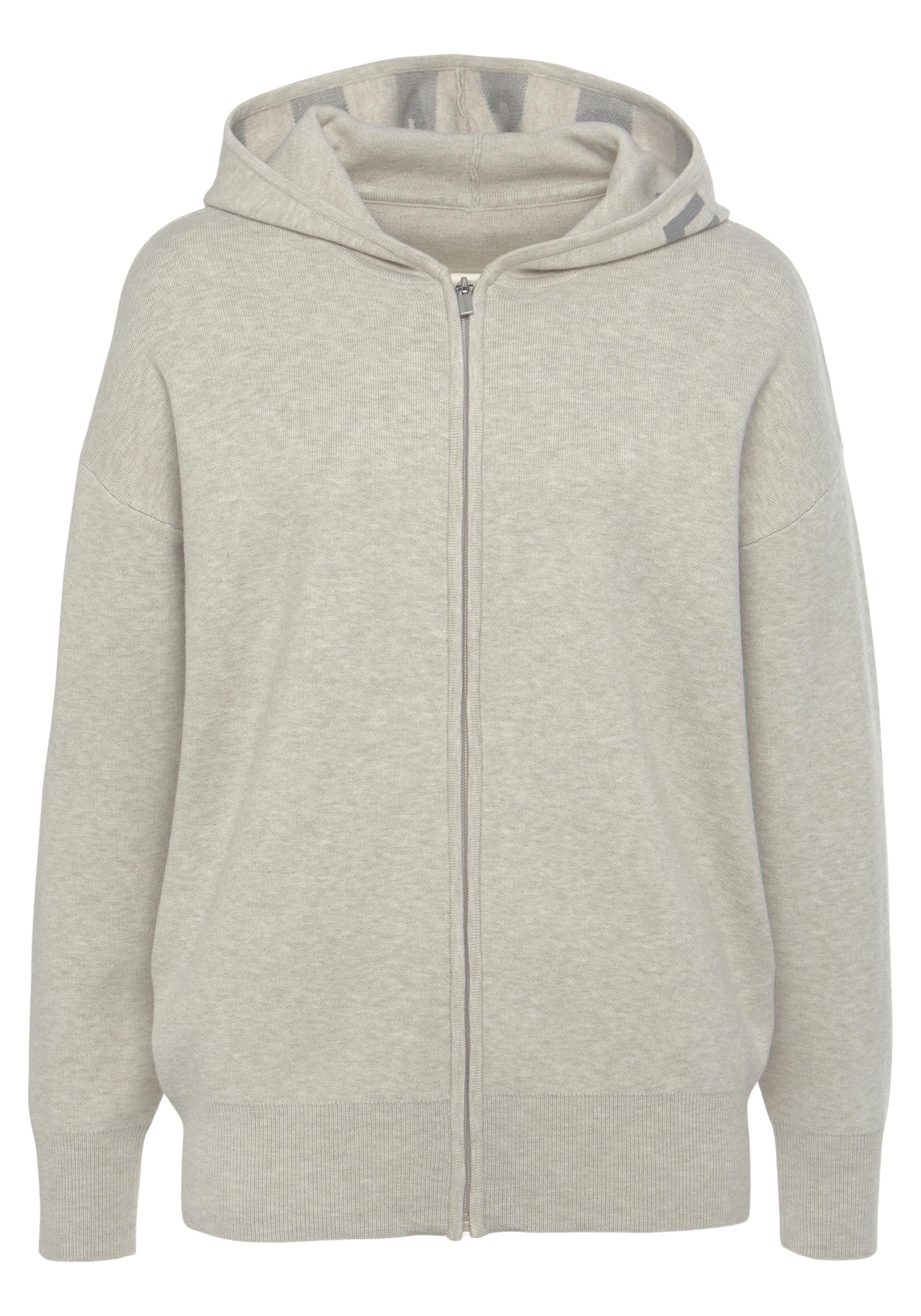 Gemütliche Strickjacke von Elbsand mit Markenschriftzug entlang der Kapuze. Durchgehender Reißverschluss. Lange Ärmel und Saum mit Rippbündchen. Lockere Passform mit überschnittenen Schultern. Weiche Strickware mit Viskose.