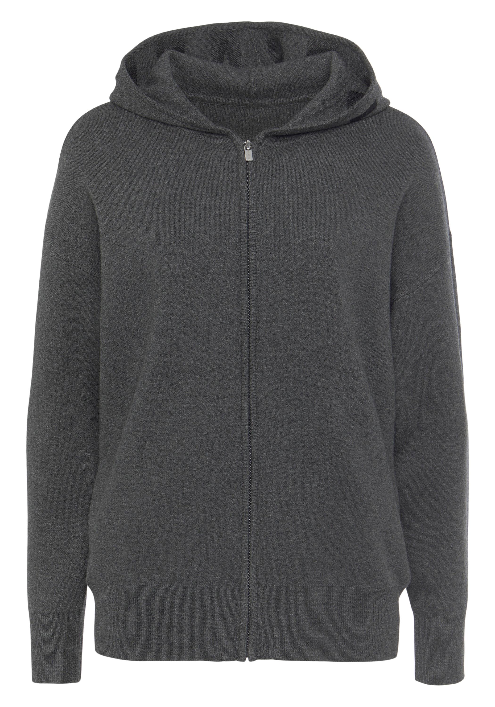 Gemütliche Strickjacke von Elbsand mit Markenschriftzug entlang der Kapuze. Durchgehender Reißverschluss. Lange Ärmel und Saum mit Rippbündchen. Lockere Passform mit überschnittenen Schultern. Weiche Strickware mit Viskose.