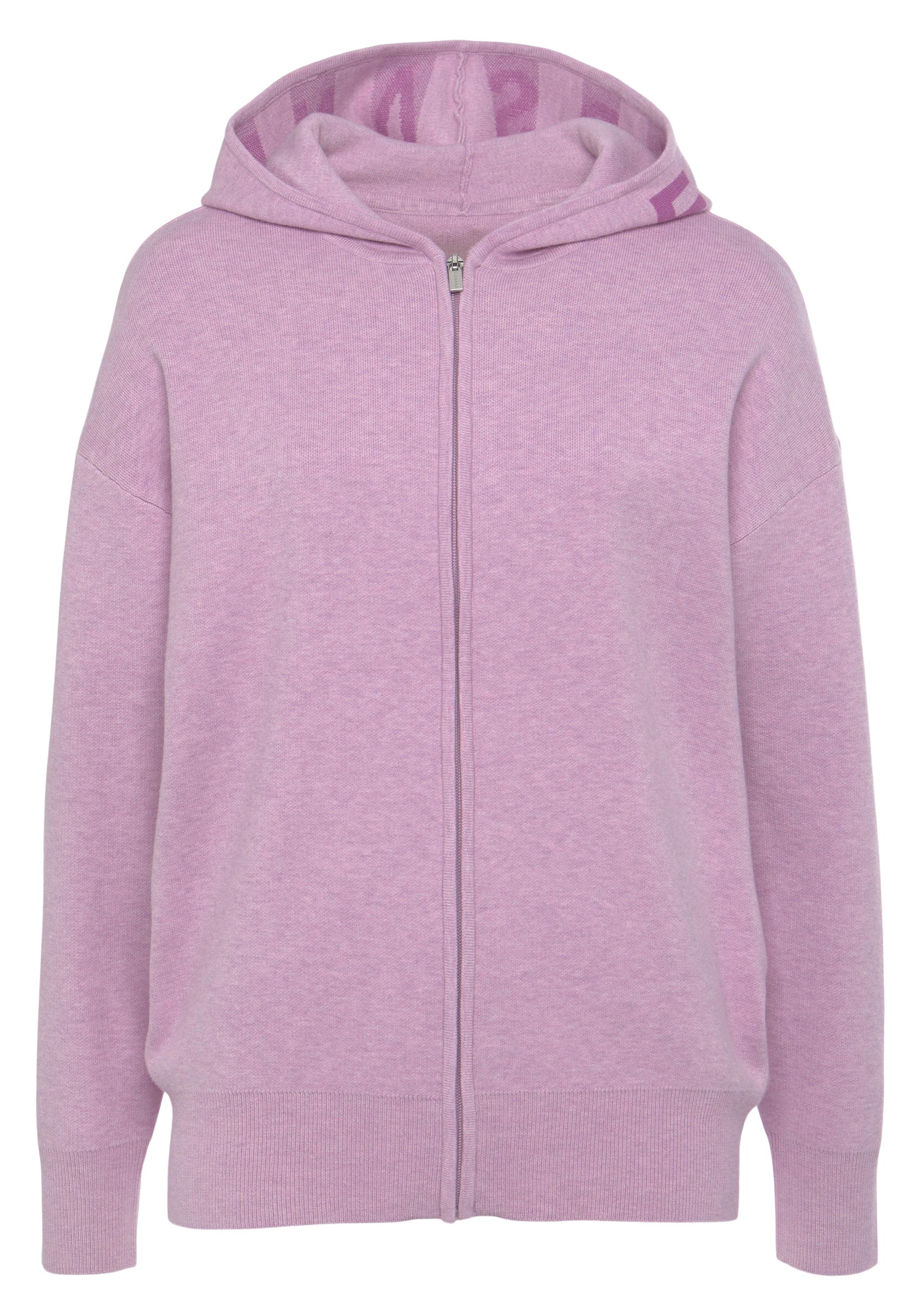 Gemütliche Strickjacke von Elbsand mit Markenschriftzug entlang der Kapuze. Durchgehender Reißverschluss. Lange Ärmel und Saum mit Rippbündchen. Lockere Passform mit überschnittenen Schultern. Weiche Strickware mit Viskose.