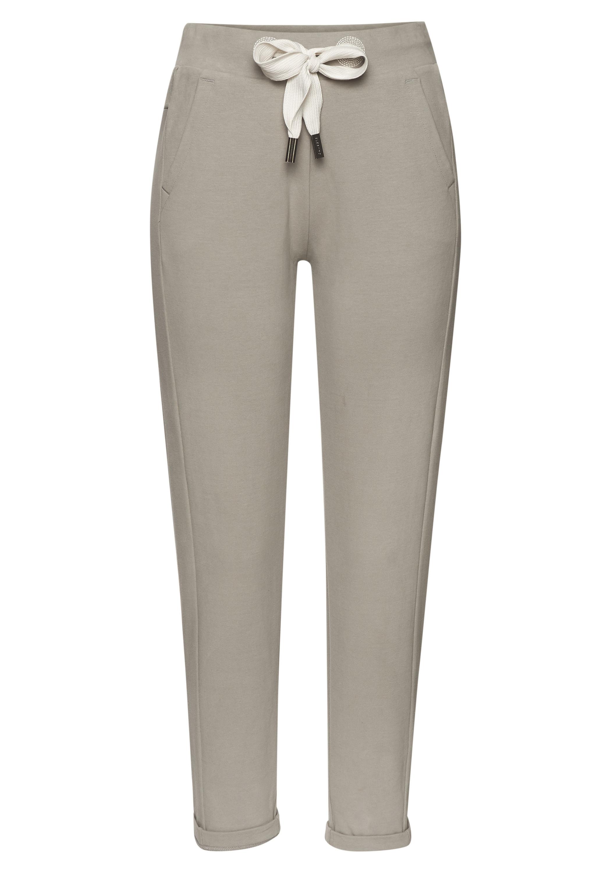 Lässige Sweathose von Elbsand mit breitem, elastischem Bund mit Tunnelzug, seitlichen Eingrifftaschen und umsäumten Beinabschlüsen. Logoschriftzug hinten am Bund. Bequeme, legere Passform – ideal für Casual- und Homewear-Outfits. Elastische Baumwollqualität.