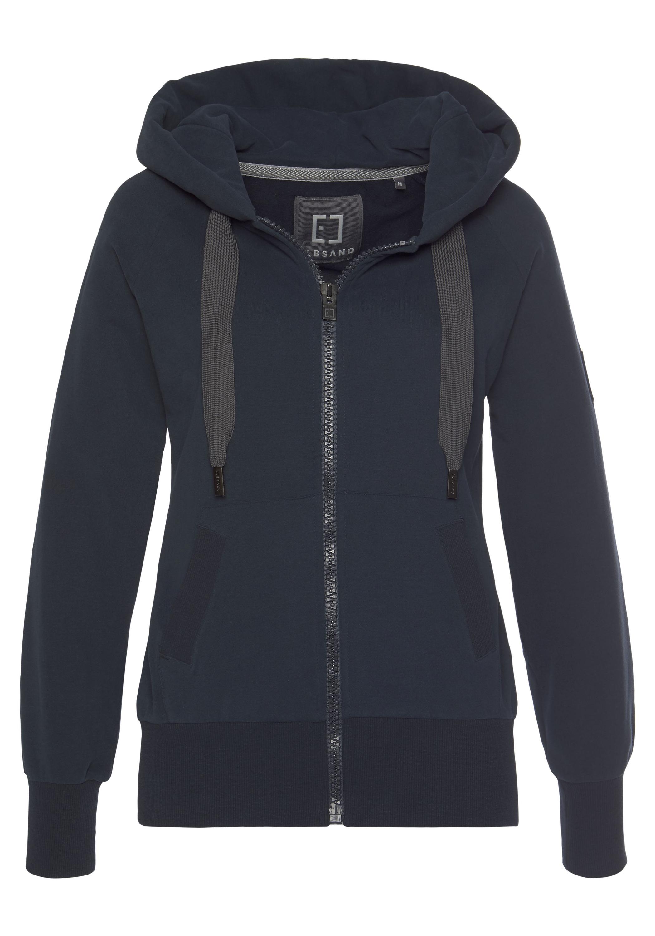 Kapuzensweatjacke "Kelda" von ELBSAND. Kapute mit Tunnelzug und breitem Logoprint. Reißverschluss vorn und Eingrifftaschen. Logo-Label auf einem Ärmel. Länge ca. 70 cm. Aus 93% Baumwolle, 7% Elasthan.