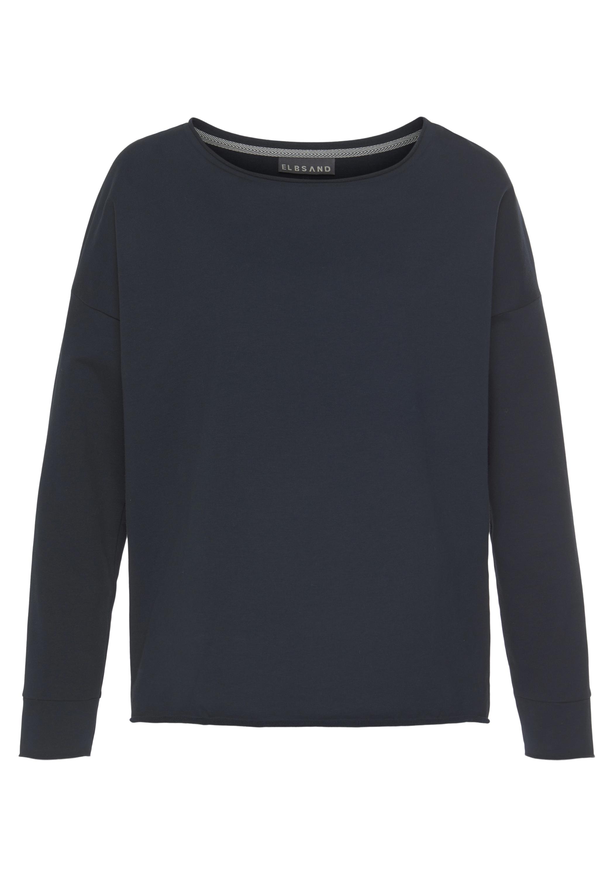 Sweatshirt von Elbsand mit großem Logoprint und Teilungsnaht auf dem Rücken. Überschnittene Schultern und lange Ärmel. Rollsaum. Leichte, innen angeraute Sweatqualität.