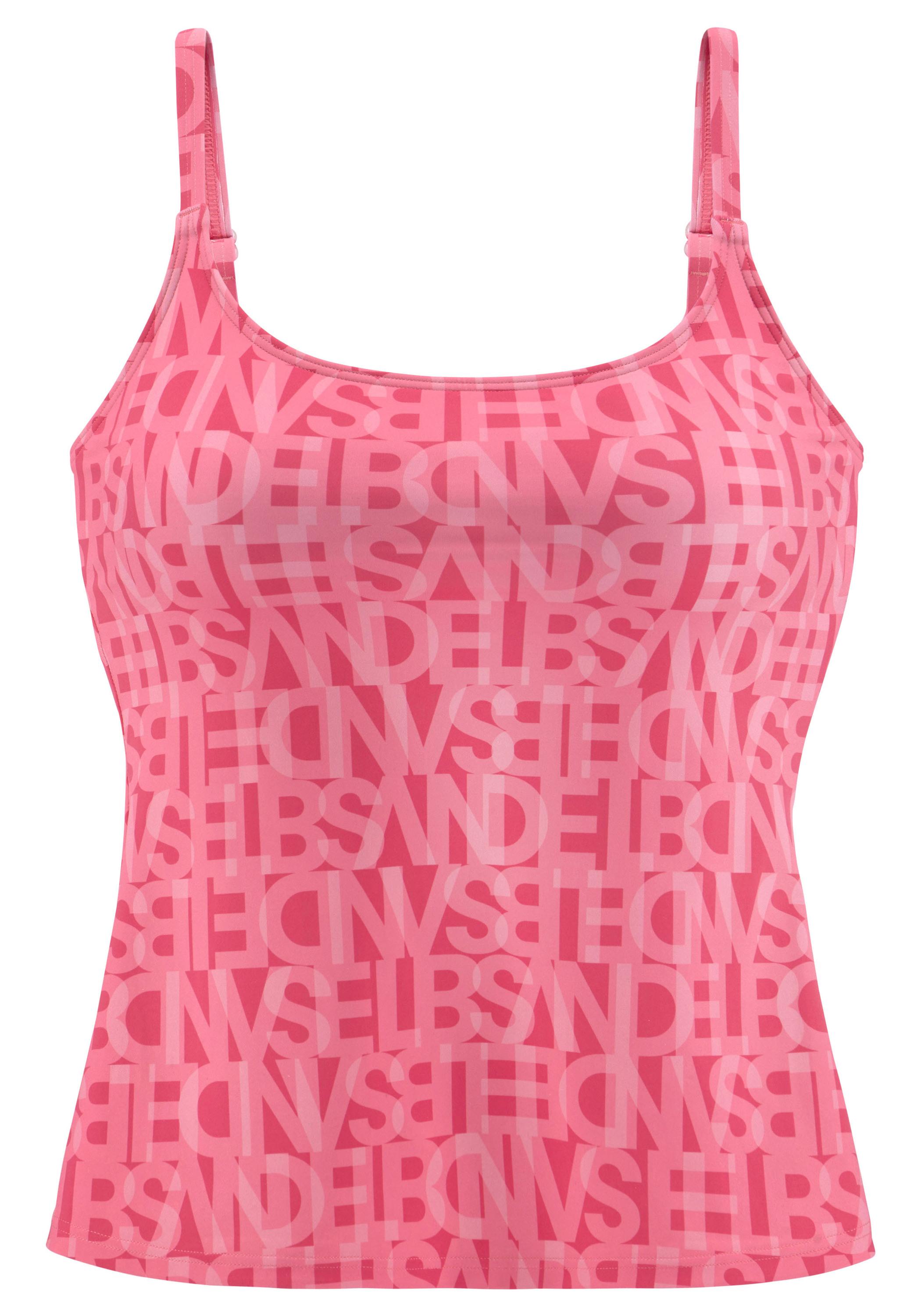 Tankini-Top von Elbsand mit Allover-Brandwording. Herausnehmbare Cups und verstellbare Träger. Körpernahe Passform. Aus recycelter Microfaser.