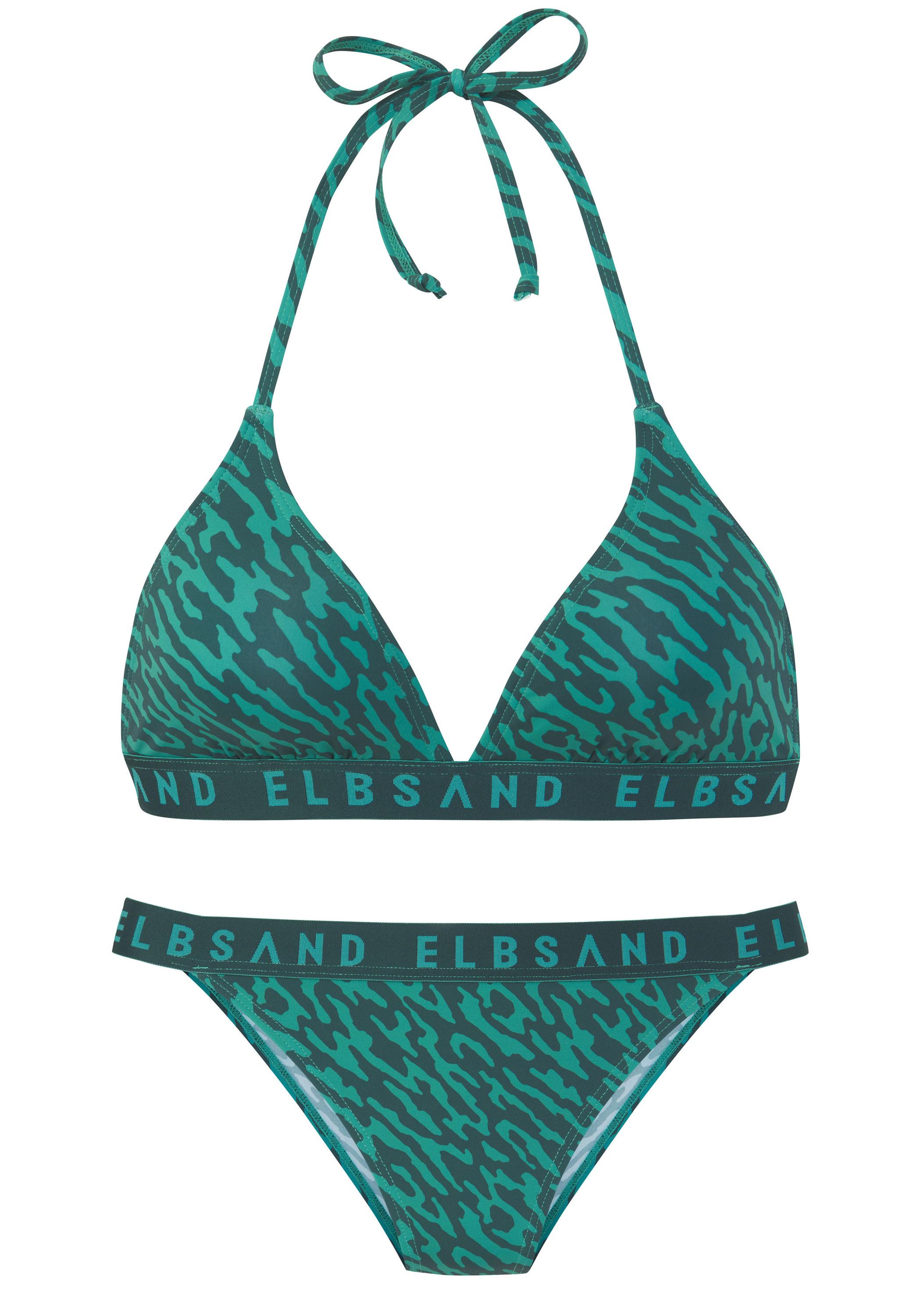 Triangel-Bikini von Elbsand mit Allover-Animalprint. Bündchen mit sportlichen Labelschriftzügen. Top mit herausnehmbaren Softcups. Im Nacken zu binden, im Rücken zu schließen. Hose mit höherem Beinausschnitt. Angenehm zu tragendes Material mit recyceltem Polyamid.