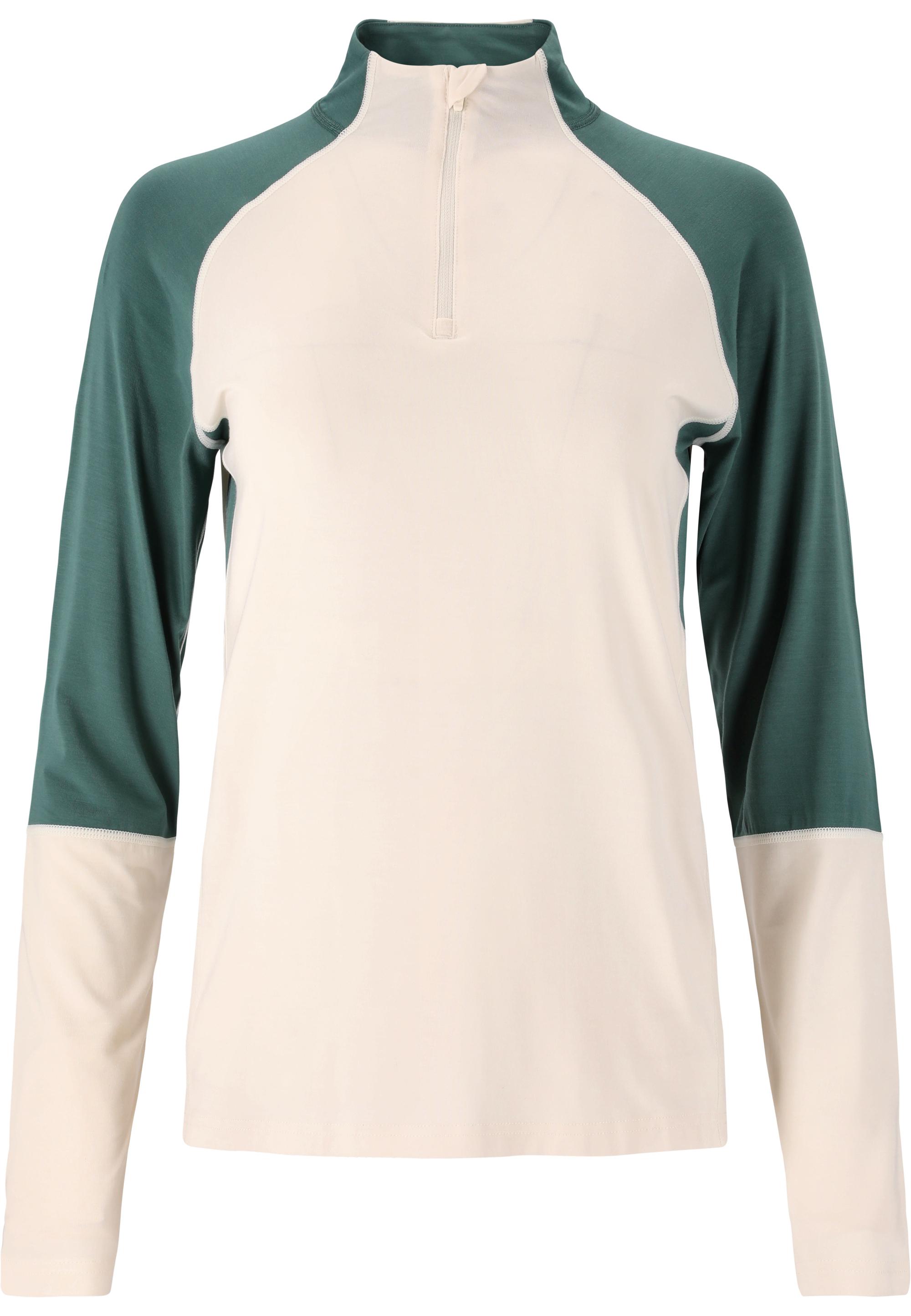 Einen hochwertigen Midlayer erhalten Sie mit Abbye der Marke Endurance. Sie wurde für Damen entworfen und ist eine optimale Wahl für Wintersport, Fitness oder Outdoor. Optisch zeigt sich das Langarmshirt mit zweifarbigem Kontrast. Das Verschließen geht dank verdeckter Reißverschlussleiste mit Kinnschutz einfach und schnell. Das Longsleeve ist atmungsaktiv gefertig und trocknet dank praktischer Quick Dry-Funktion besonders schnell.