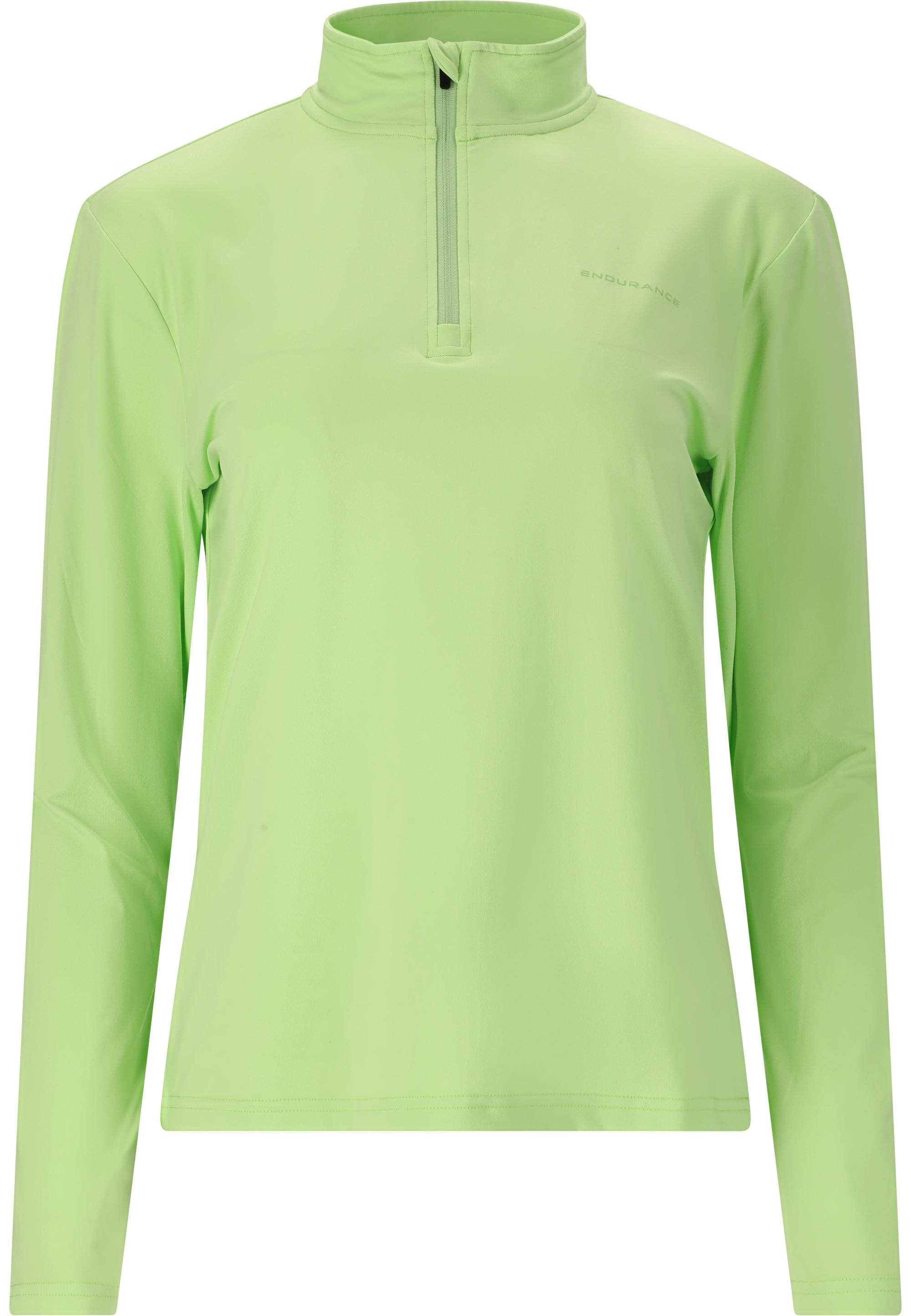 Aktive Stunden werden mit dem "Aileen" Midlayer für Damen zum Erfolgserlebnis! Hergestellt aus einem 4-Wege-Stretch mit 90% Polyester und 10% Elasthan bietet er optimalen Tragekomfort und Bewegungsfreiheit. Das Oberteil fällt normal aus. Mit seiner Atmungsaktivität und Quick-Dry-Funktion hält es dich beim Training, Laufen oder Outdoor trocken und frisch. Ein smarter Halbreißverschluss mit kleinem Kragen ergänzt den Look optimal. "Aileen" macht sich perfekt als Teil von Schichtenlooks!