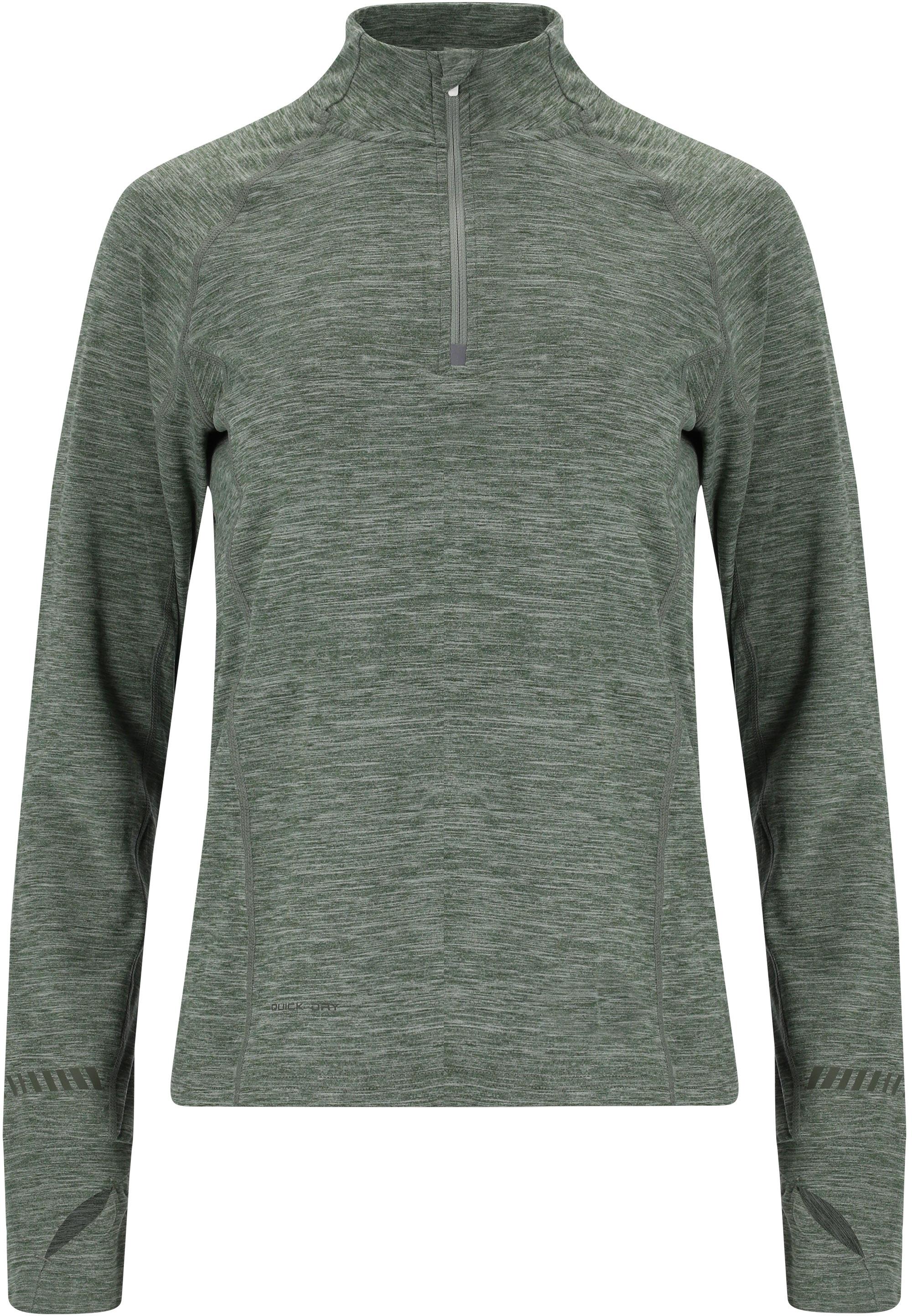 Das neue und vielseitige Funktionsshirt CANNA V2 MELANGE PERFORMANCE für Damen von ENDURANCE überzeugt durch maximale Bewegungsfreiheit sowie hervorragenden Tragekomfort. Es lässt sich schnell und universell zum coolen Sportoutfit kombinieren. Das atmungsaktive Material mit der QUICK DRY-Technologie leitet Feuchtigkeit von der Haut ab undlässt sie dadurch schneller verdunsten. Es sorgt für ein angenehmes, trockenes Tragegefühl und verhindert ein Auskühlen. Der Stehkragen mit kurzem Reißverschluss bietet Schutz vor Wind, während Daumenöffnungen ein Verrutschen der Ärmel verhindern. Die vielen kleinen reflektierenden Elemente gewährleisten zudem mehr Sicherheit im Straßenverkehr bei Dunkelheit. Abgerundet wird das Paket durch die schöne Melange-Qualität und das sportliche, schlichte Design. Ein top Preis-Leistungsverhältnis gibt es obendrein! Material: 88 % Polyester, 12 % Elastane