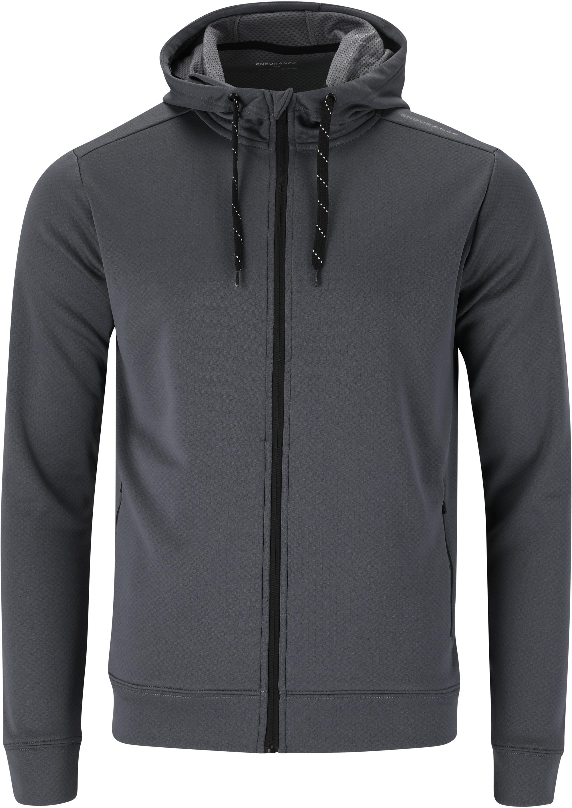 Hier kommt die coole Kapuzenjacke "Dereff M Full Zip Hoody" für Herren von Endurance aus Dänemark. Du kannst sie beim Laufen und Fitnesstraining tragen sowie im Alltag. Das Polyester-Material ist atmungsaktiv und zudem besonders schnell trocknend dank der innovative Quick Dry-Technologie. Diese transportiert Feuchtigkeit von innen nach außen und der Hoodie kann dadurch schneller trocknen. Die Kapuze ist nicht nur stylisch, sondern schützt auch vor Wind und Zugluft. Natürlich gibt es auch zwei seitliche Reißverschlusstaschen. Der reflektierende Logo-Schriftzug unterstreicht den lässig-sportlichen Look von Endurance aus Dänemark.
