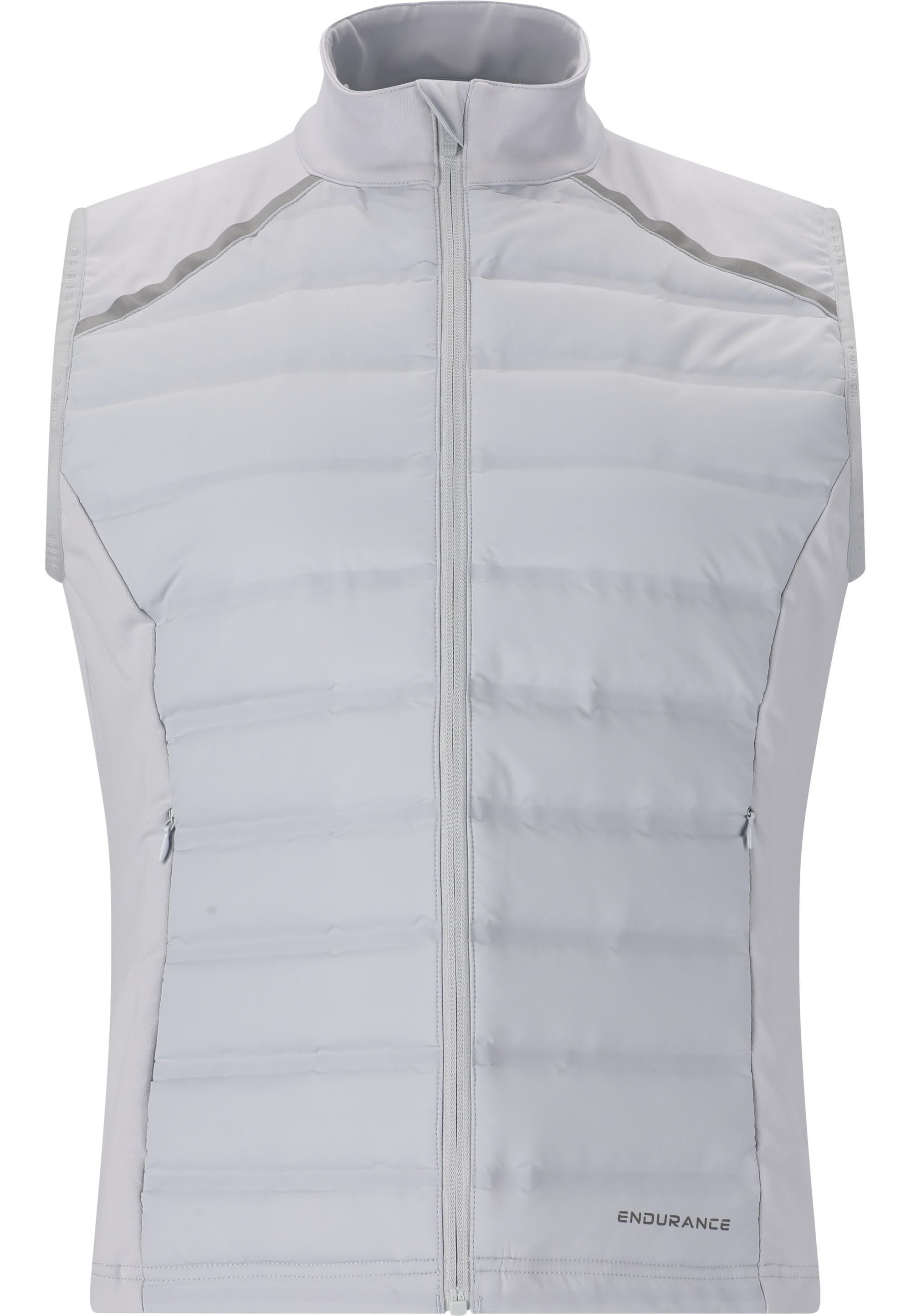 Die Funktionsweste REITTA W Hybrid Vest für Damen von ENDURANCE aus Dänemark ist eine sportliche Hybrid-Weste mit wärmenden Stepp-Einsätzen aus Kunstfaser. Sie ist perfekt für's Laufen und Outdoorfitness an kühlen Tagen. Die Windstopper-Membran und der hochabschließende Stehkragen sorgen für einen tollen Schutz vor kaltem Wind und Zugluft. Seitliche Stretch-Einsätze geben dir beste Bewegungsfreiheit. Reflektierende Elemente sorgen stets für eine gute Sichtbarkeit im Dunkeln. Ein sportliches Design aus Skandinavien, ein langlebiger und durchgehender YKK-Markenreißverschluss auf der Vorderseite, seitliche Reißverschlusstaschen sowie ein Kinnschutz runden das Paket ab. Tipp: die Kunstfaserdaune kann jederzeit und unkompliziert in der Maschine bei 40 Grad gewaschen werden. Material: 100% Polyester