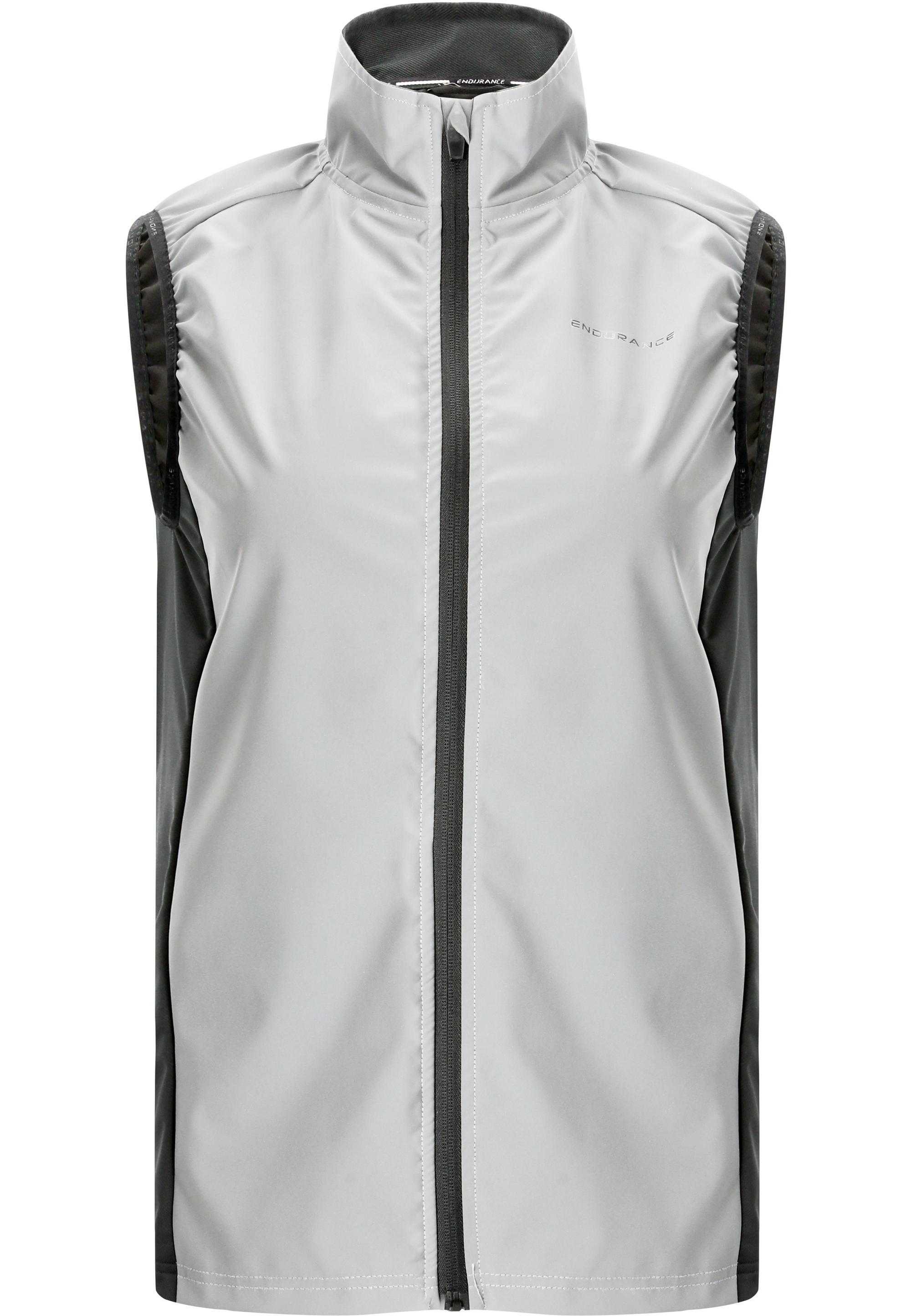 Dynamisch, stylisch und funktionell! Die Laufweste "Rumey W Light Night Vest" für Damen von ENDURANCE pusht nicht nur Deinen Style, sie sorgt auch für einen top Tragekomfort beim Sport. Das atmungsaktive und leichte Material bringt beste Eigenschaften für ein schweißtreibendes Workout. Das reflektierende Material sorgt im Straßenverkehr stets für eine top Sichtbarkeit im Dunkeln. Die Weste ist auf der Rückseite mit feinen Lüftungslöchern perforiert und sorgt so für eine maximale Atmungsaktivität. Das Material ist wasser- und windabweisend. Zudem ist diese mit einem hochschließenden Kragen ausgestattet. Weiter verfügt sie über einen langlebigen, winddichten YKK-Qualitätsreißverschluss mit Kinnschutz. Beide Seitentaschenaschen lassen sich ebenfalls mit einem Reißverschluss schließen. Dank der sportlichen Passform mit verlängertem Rückteil bist Du bei allen Bewegungen maximal frei. Egal ob du zum Laufen, Fitness oder Trailrunning gehst - die hochwertige Laufweste "Rumey W Light Night Vest" für Damen von ENDURANCE sorgt für einen hohen Komfort und eine top Sichtbarkeit im Dunkeln!
