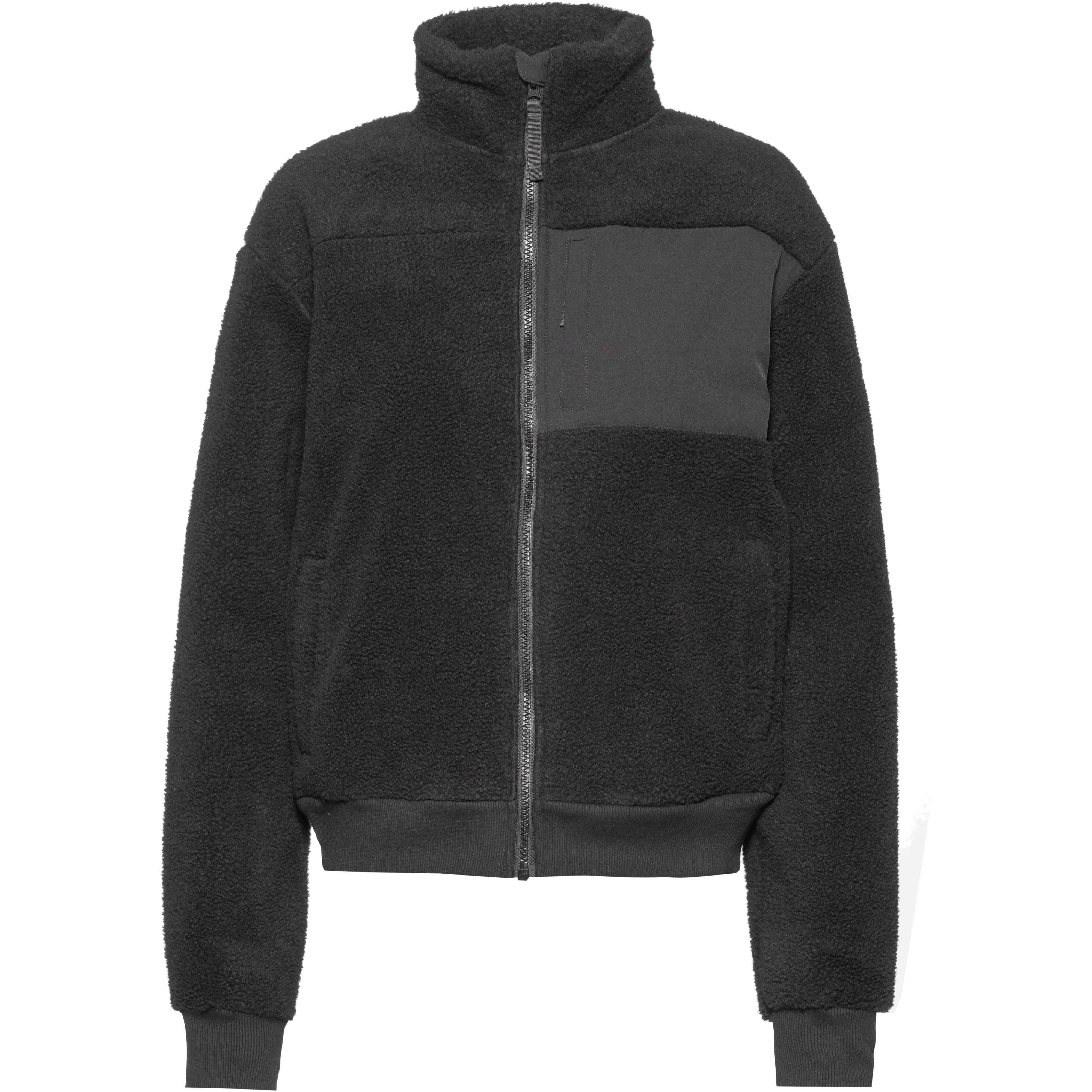 Jacke aus kuscheligem Sherpa-Fleece mit optimale Wärmeisolierung; Stehkragen, Kinnschutz und durchgehender Frontreißverschluss; 1 Brusttasche mit Reißverschluss aus Webmaterial sowie 2 Eingrifftaschen; elastischer Bund an den Ärmeln und am Saum; Obermaterial 100% Polyester, Einsatz 92% Polyester, 8% Elastan.