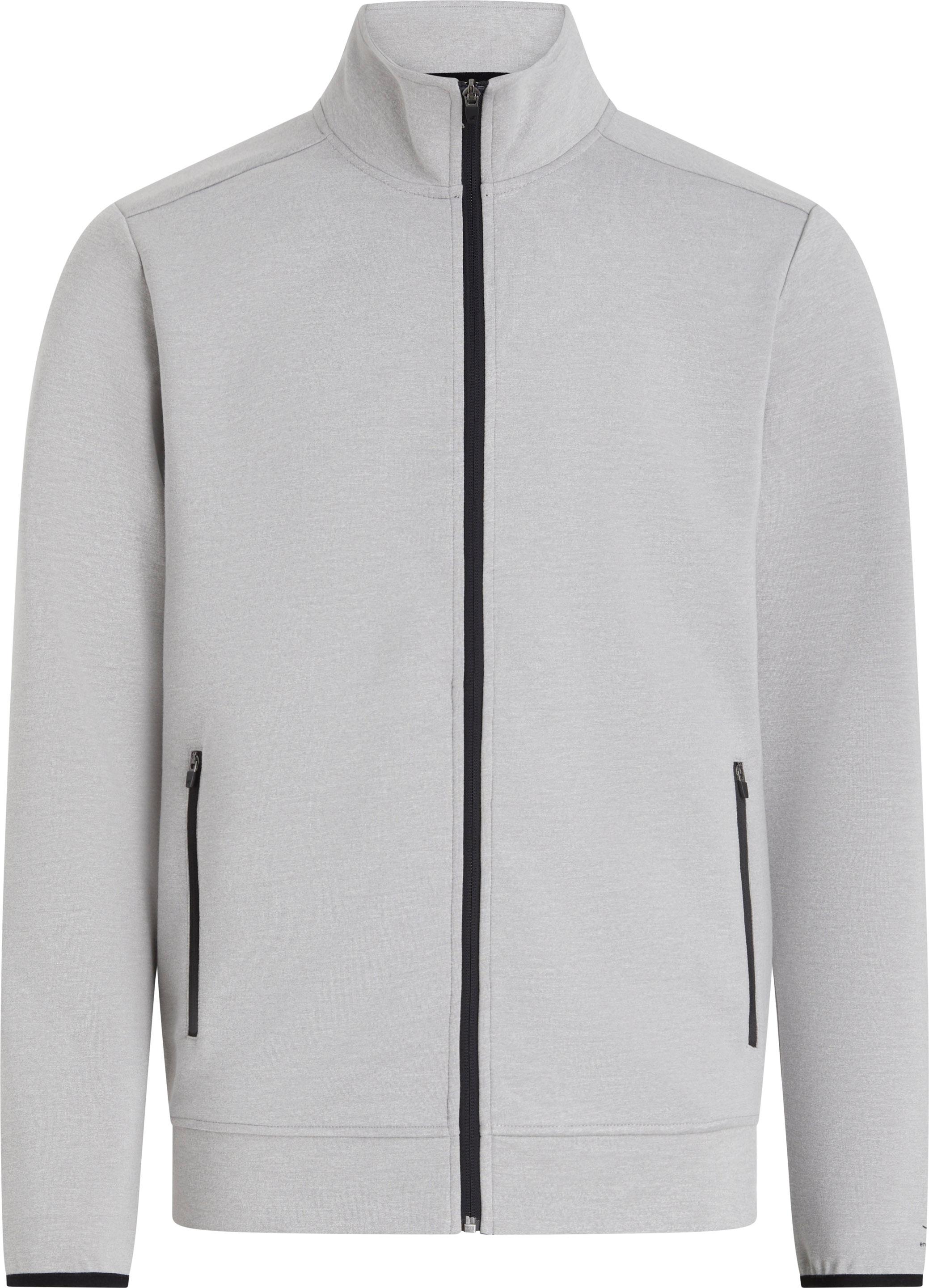 Trainingsjacke in unifarbenem Design mit Stehkragen; durchgehender, zentraler Reißverschluss; 2 seitliche Reißverschlusstaschen; Material 100% Polyester.