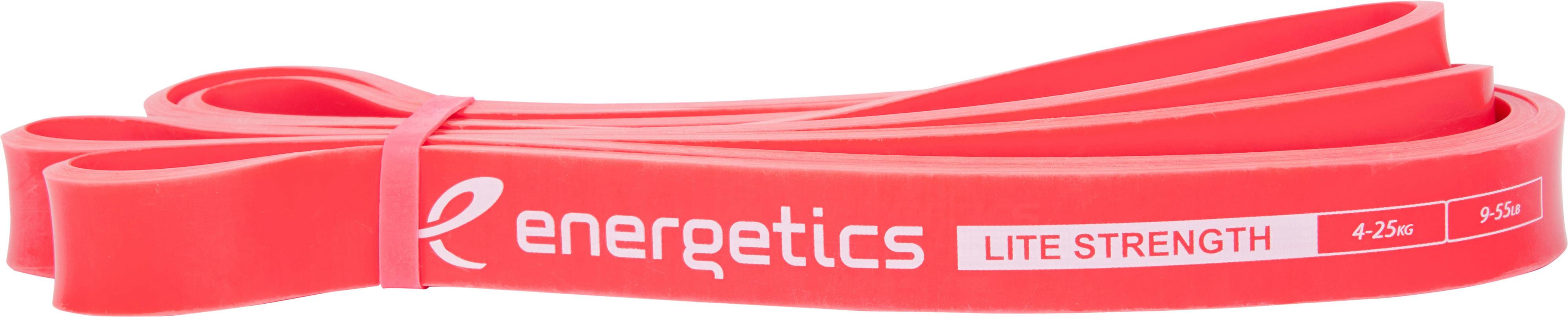 Schmales Gymnastikband aus strapazierfähigem Latex; ideal für Ganzkörpertraining und physiotherapeutische Übungen; Widerstandsstufen: rot = medium, grün = stark, blau = extra stark.