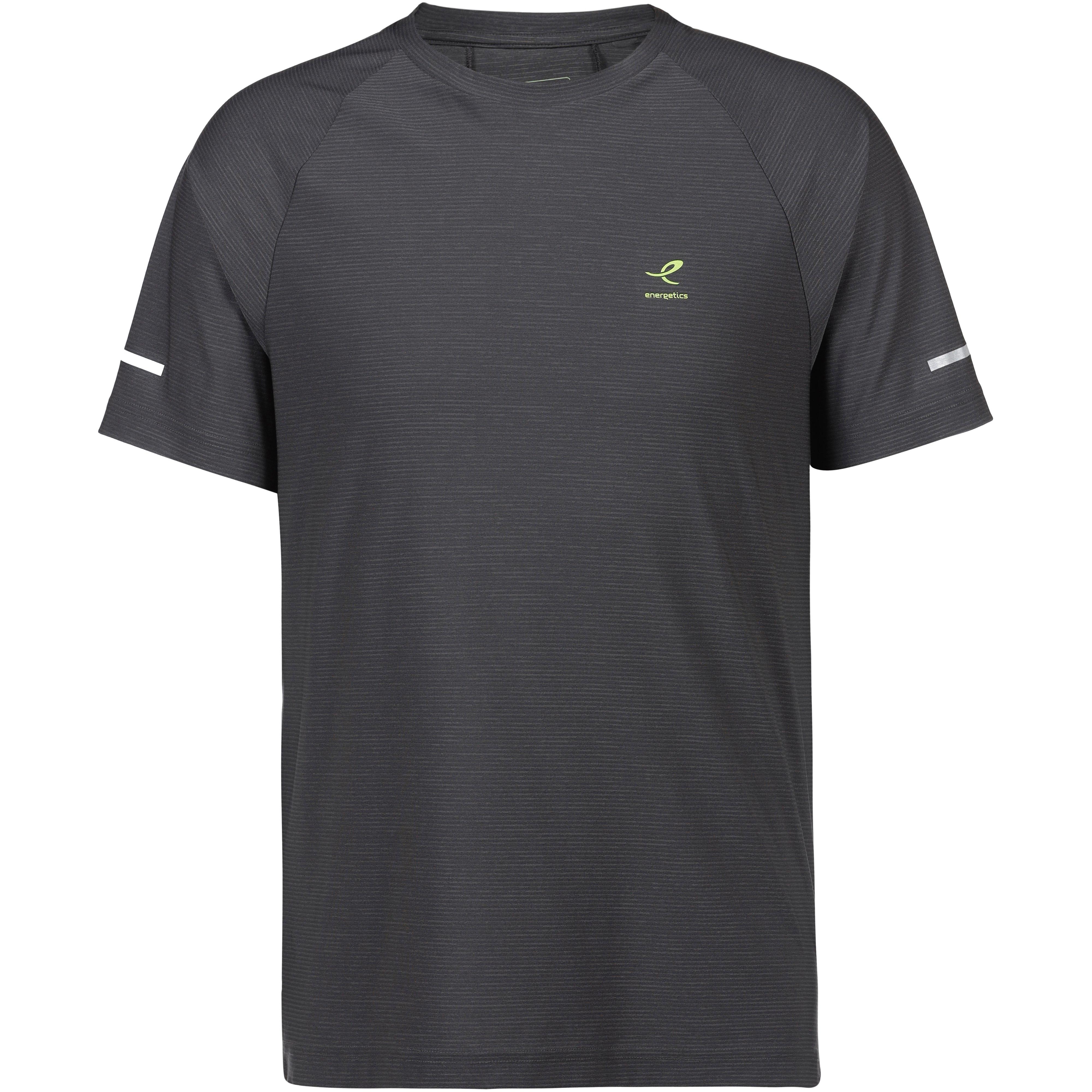 Funktionsshirt aus leichtem Material mit dezentem Streifenmuster; Rundhalsausschnitt und kurze Raglanärmel; seitlich geschlitzter Saum; reflektierende Details; Material 100% Polyester.
