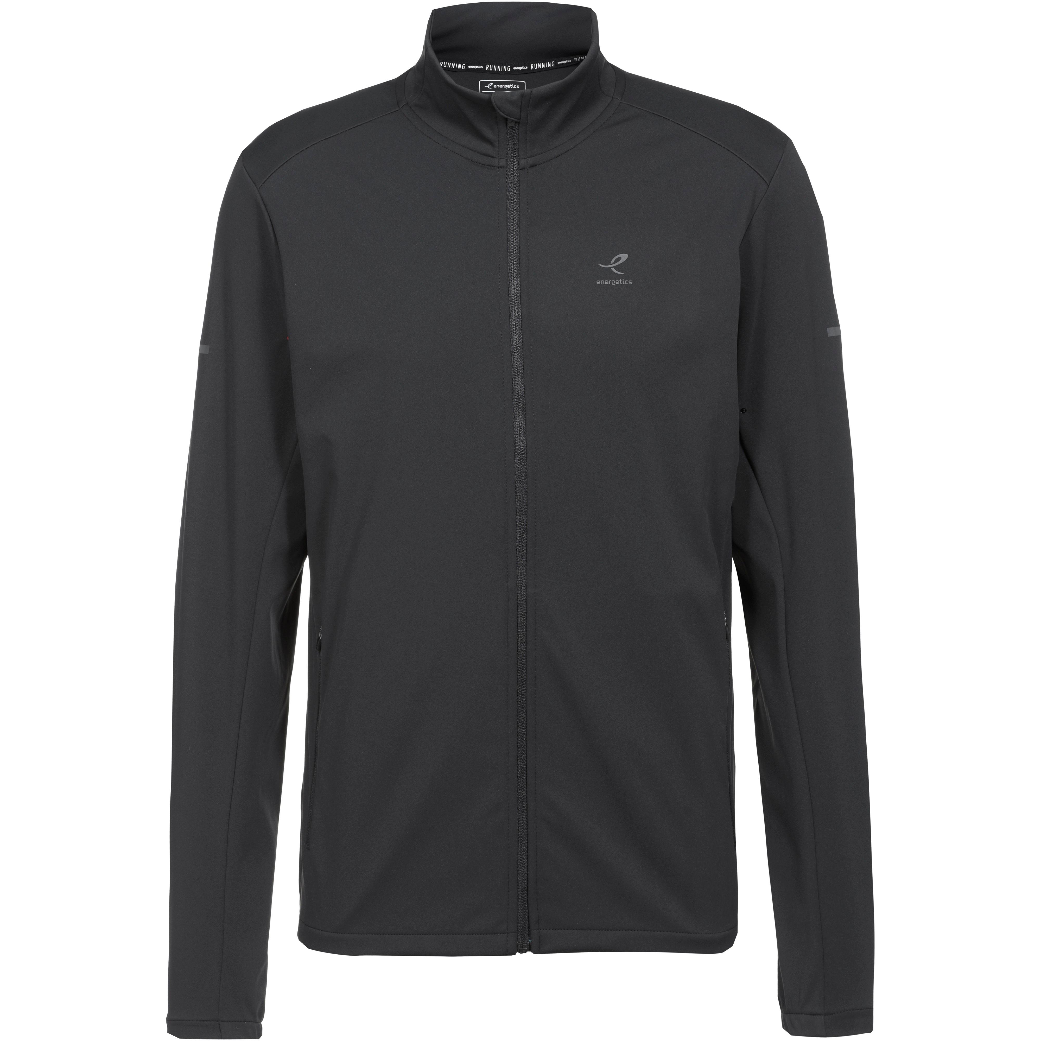 Laufjacke aus leichtem 3-Lagen-Softshellmaterial; winddicht, wasserabweisend und atmungsaktiv; Stehkragen mit Kinnschutz; durchgehender, zentraler Reißverschluss; 2 seitliche Reißverschlusstaschen; Einsatz aus sehr leichtem und dünnem Material am Rücken; Saum und Ärmelbündchen teils elastisch; reflektierende Details; Wassersäule: 5.000 mm; Material I 100% Polyester; Material II 100% Polyester.