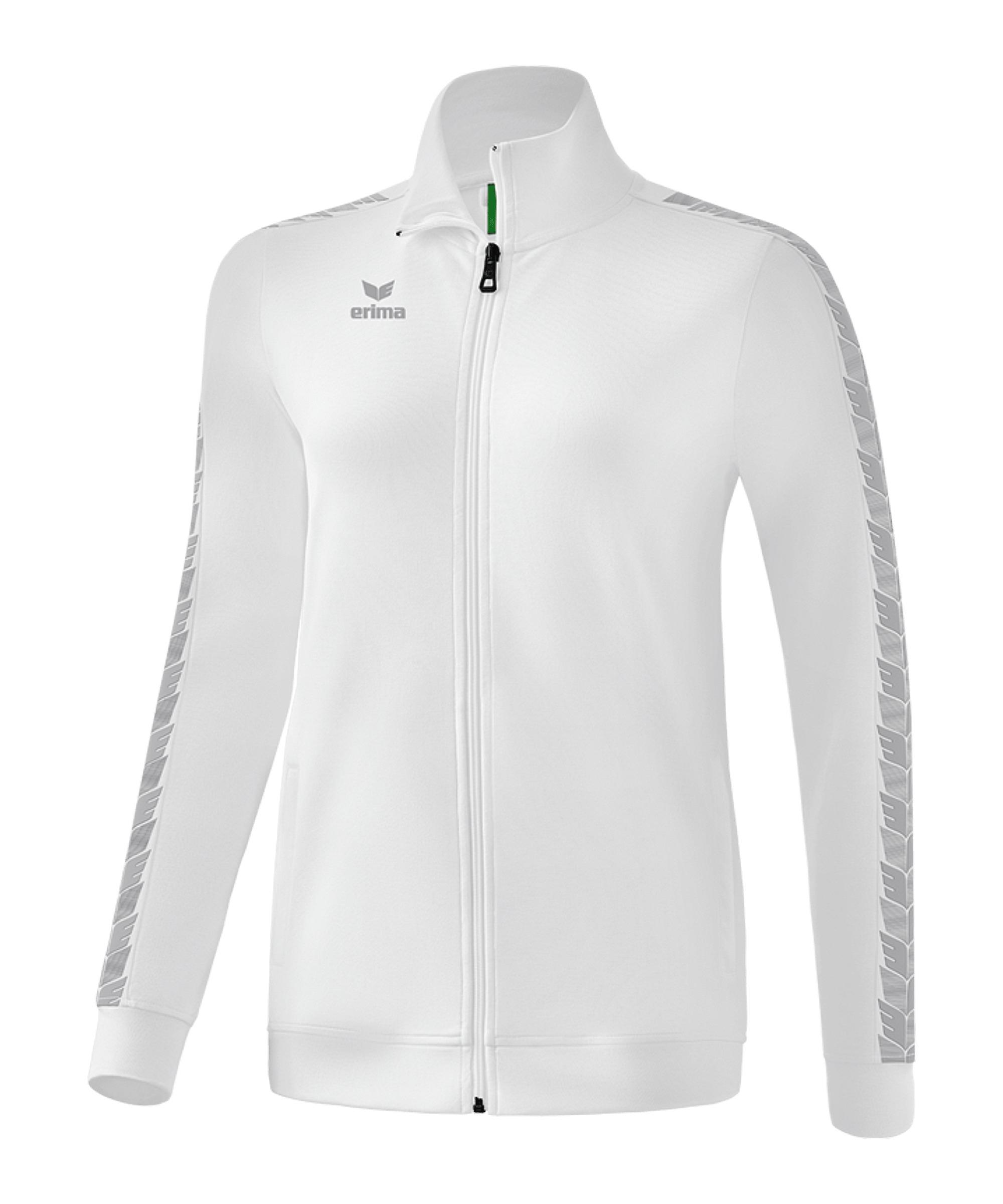Du und dein Team seid perfekt gekleidet durch das Modell in Weiß. Erima veröffentlicht mit der Damen-Sportjacke ein absolut einmaliges Produkt. Das leichte und super bequeme Modell überzeugt auf ganzer Linie. Eine hohe Strapazierfähigkeit wird euch geboten. Diese Trainingsjacke ist der ideale Begleiter für eure sportlichen Aktivitäten. Verschließt diese Sportjacke ganz bequem und schnell mit dem Reißverschluss. Ein stylischer Stehkragen bietet dieser langärmligen Sportjacke optische Unterstützung. Produktdetails: Ausschnitt: Stehkragen Langärmlig Eigenschaften: super bequem, leicht Strapazierfähig Material: 50% Baumwolle, 50% Polyester