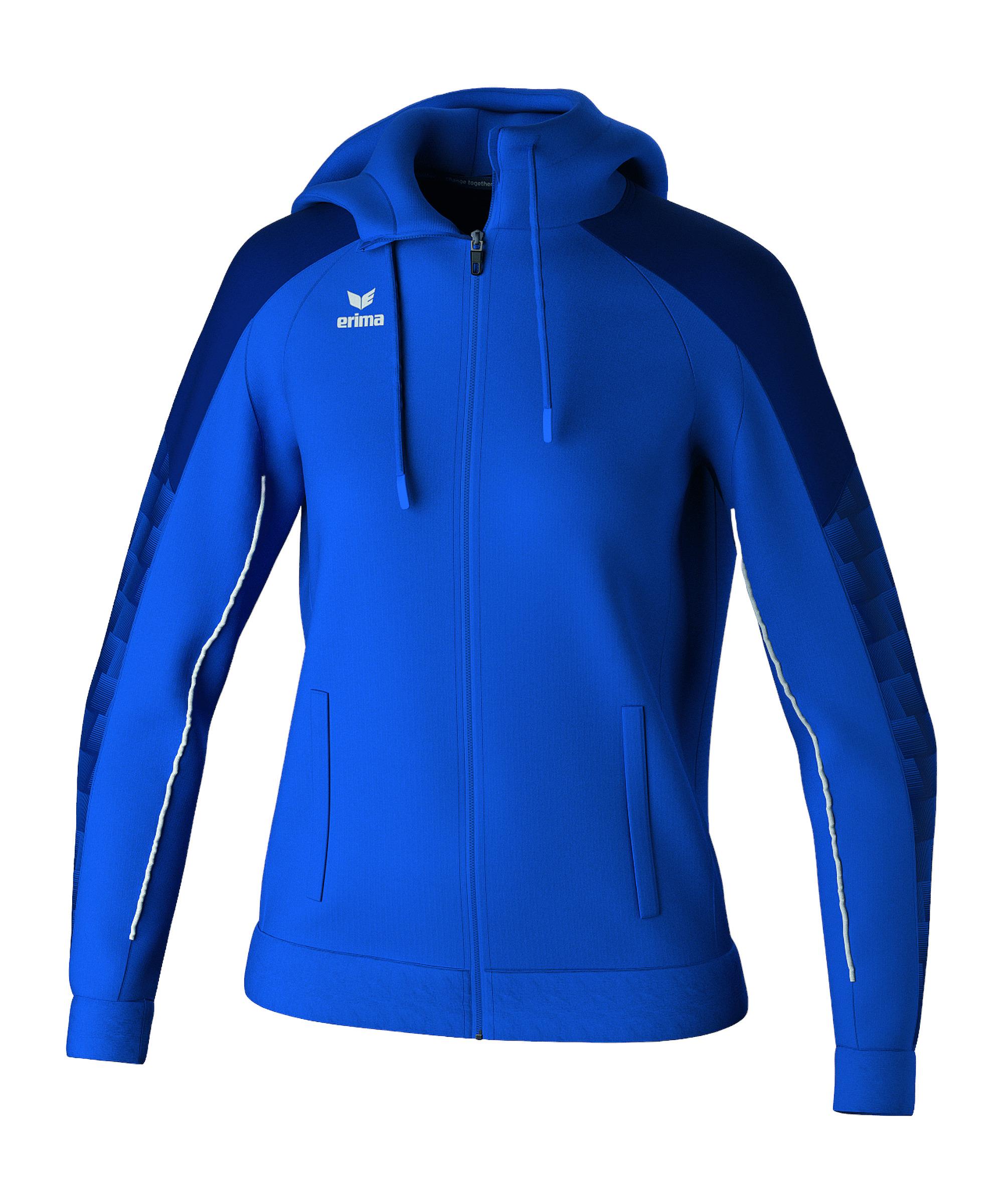 Die Damen-Kapuzenjacke von Erima in Blau stattet euch optimal aus und gibt euch die Möglichkeit, neue Bestleistungen zu erzielen. Ihr seid vor schlechtem Wetter und Wind durch die Kapuze mit Kordelzug sicher. Sie ist atmungsaktiv und bequem. Obendrein bietet sie euch eine hohe Strapazierfähigkeit. Optische Unterstützung bekommt diese langärmlige Kapuzenjacke durch einen trendigen Stehkragen. Die Kapuzenjacke lässt sich durch einen Reißverschluss verschließen und besitzt seitliche Taschen. Mit dieser Kapuzenjacke könnt ihr euch ideal auf euren nächsten Gegner vorbereiten. Produktdetails: Extras: Kapuze mit Kordelzug Zusätzlicher Stauraum durch seitliche Taschen Ausschnitt: Stehkragen Langärmlig Eigenschaften: atmungsaktiv, bequem Strapazierfähig Material: 100% Polyester