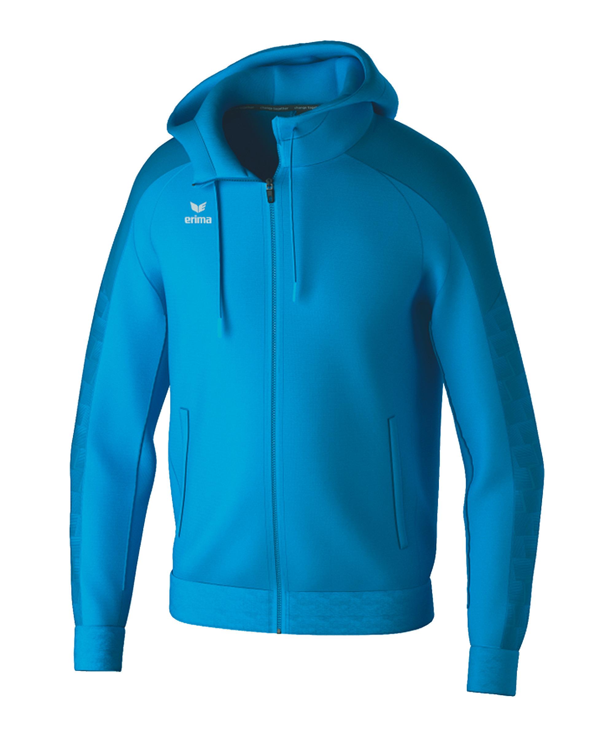 Mit der Erima Kapuzenjacke kannst du dich beim Training so richtig wohlfühlen. Diese Jacke ist dein idealer Begleiter für jede Trainingseinheit, egal ob drinnen oder draußen. Die Erima Kapuzenjacke punktet mit einem durchgehenden Reißverschluss, der dir das An- und Ausziehen super leicht macht. Die seitlichen Reißverschlusstaschen bieten dir sicheren Stauraum für deine Essentials, damit du dich voll und ganz auf dein Training konzentrieren kannst. Und das Beste: Sie besteht teilweise aus recycelten Materialien, was sie zu einer umweltfreundlichen Wahl macht. Schnapp dir die Erima Kapuzenjacke und spüre die Qualität, die du von Erima gewohnt bist. Du wirst den Unterschied bei jedem Training merken!Produktdetails:Herstellerfarbbezeichnung: curacao/mykonosHauptfarbe: BlauNachhaltigkeit: Teilweise aus recycelten MaterialienTechnologie-Eigenschaften: Atmungsaktivität, Bequem, SchweißableitendTaschen: Reißverschlusstaschen an der SeiteMaterial: 100% Polyester