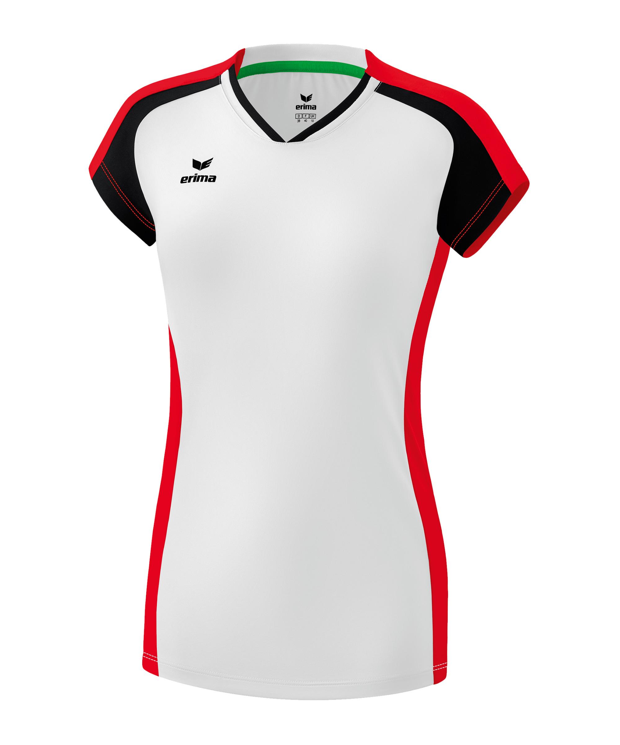 Mit dem Damen-Trikot in Weiß bringt Erima ein Produkt an den Start, mit dem du hervorragend ausgestattet bist und beweisen wirst, was in dir steckt. Es ist elastisch und schweißableitend. Perfekte Ausstattung für das nächste Training oder die wichtige Aufwärmphase vor dem Spiel. Durch einen zeitlosen V-Ausschnitt überzeugt dieses kurzärmelige Trikot. Produktdetails: Ärmellänge: Kurzärmelig Ausschnitt: V-Ausschnitt Eigenschaften: schweißableitend, elastisch Material: 88% Polyester, 12% Elasthan