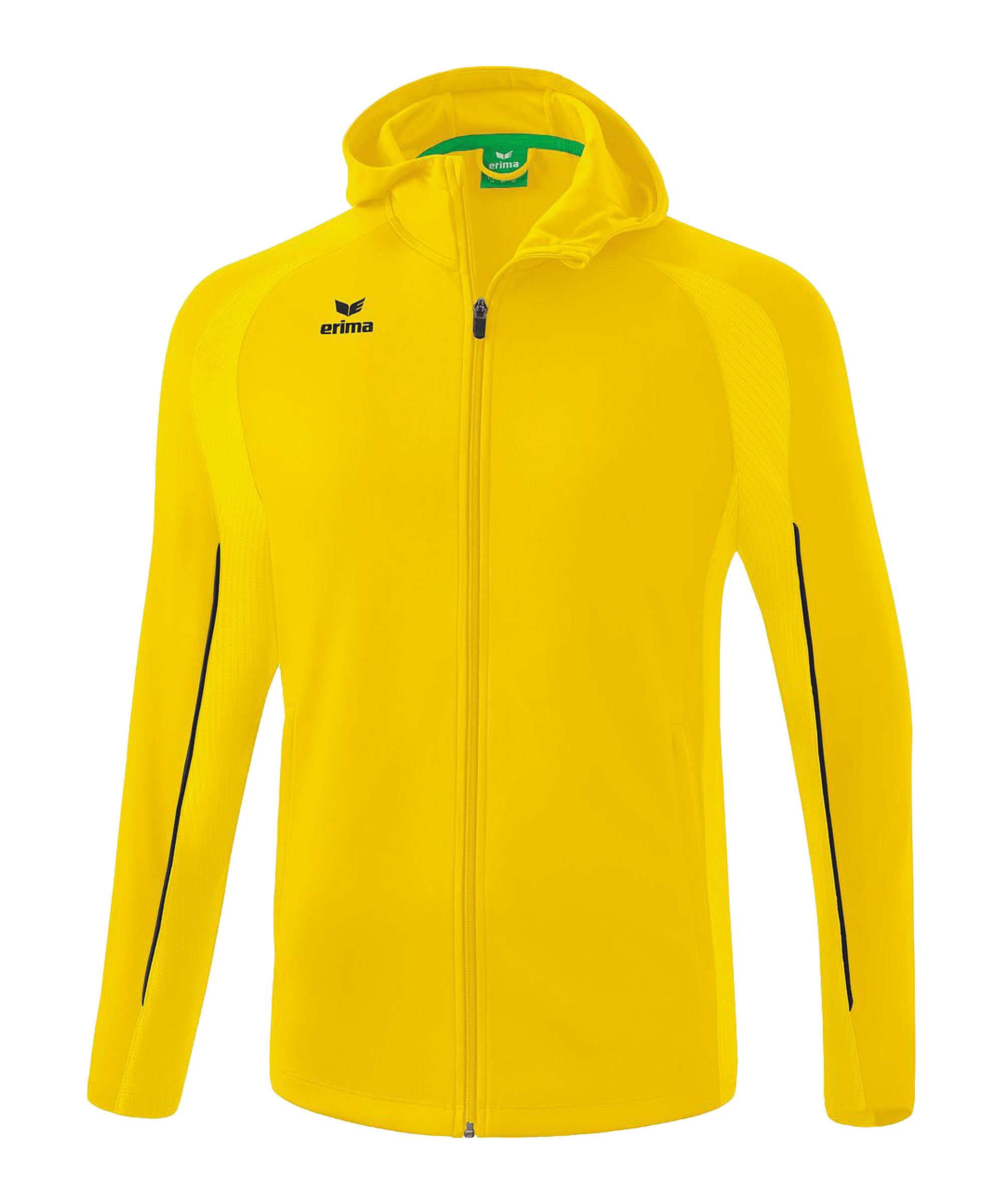 Mit der Erima Kapuzenjacke kannst du dich beim Training so richtig wohlfühlen. Diese Jacke ist ideal für dein Training, egal ob du im Freien oder in der Halle unterwegs bist. Die robuste, belastbare Konstruktion sorgt dafür, dass die Jacke einiges aushält und dich lange begleitet. Die praktischen Reißverschlusstaschen an der Seite bieten dir sicheren Stauraum für deine Essentials. Und die Kapuze hält dich bei windigem Wetter schön warm. Schnapp dir die Erima Liga Star hooded jacket und erlebe selbst, wie sie dein Training auf das nächste Level hebt. Du wirst die Qualität und den Komfort von Erima spüren und lieben. Produktdetails:Herstellerfarbbezeichnung: gelb/schwarzHauptfarbe: GelbTechnologie: HaltbarkeitTaschen: Reißverschlusstaschen an der SeiteTechnologie-Eigenschaften: komfortabel, robustMaterial: 100% Polyester