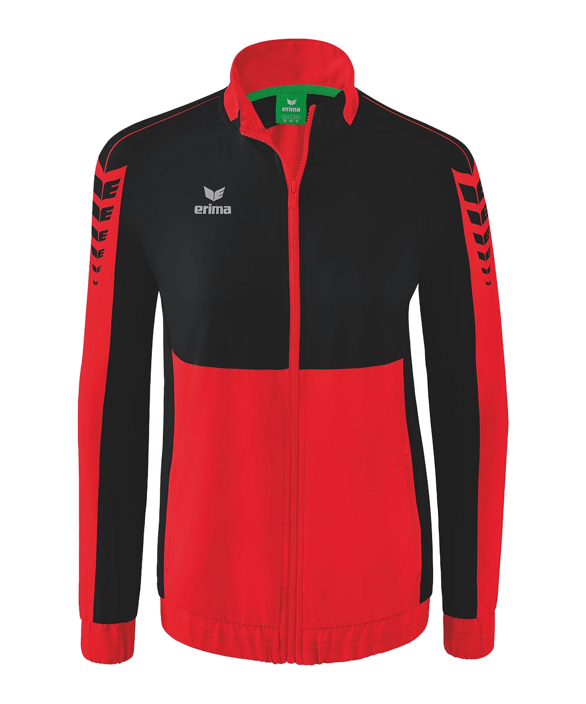 Du und dein Team seid perfekt gekleidet durch das leichte Modell in Rot. Die Marke Erima bringt mit der Damen-Präsentationsjacke ein wunderbares Produkt auf den Markt. Das atmungsaktive, super bequeme und leichte Modell überzeugt auf ganzer Linie. Bei Präsentationen oder vor und nach dem Match macht ihr hiermit einen klasse Eindruck. Die Präsentationsjacke ist langärmlig und hat einen stylischen Stehkragen. Verschließt diese Sportjacke ganz bequem und schnell mit dem Reißverschluss. Die seitlichen Zipper-Taschen bieten Platz und Stauraum für alle kleinen Notwendigkeiten. Produktdetails: Stauraum durch seitliche Zipper-Taschen Ausschnitt: Stehkragen Langärmlig Eigenschaften: leicht, super bequem, atmungsaktiv Material: 100% Polyester