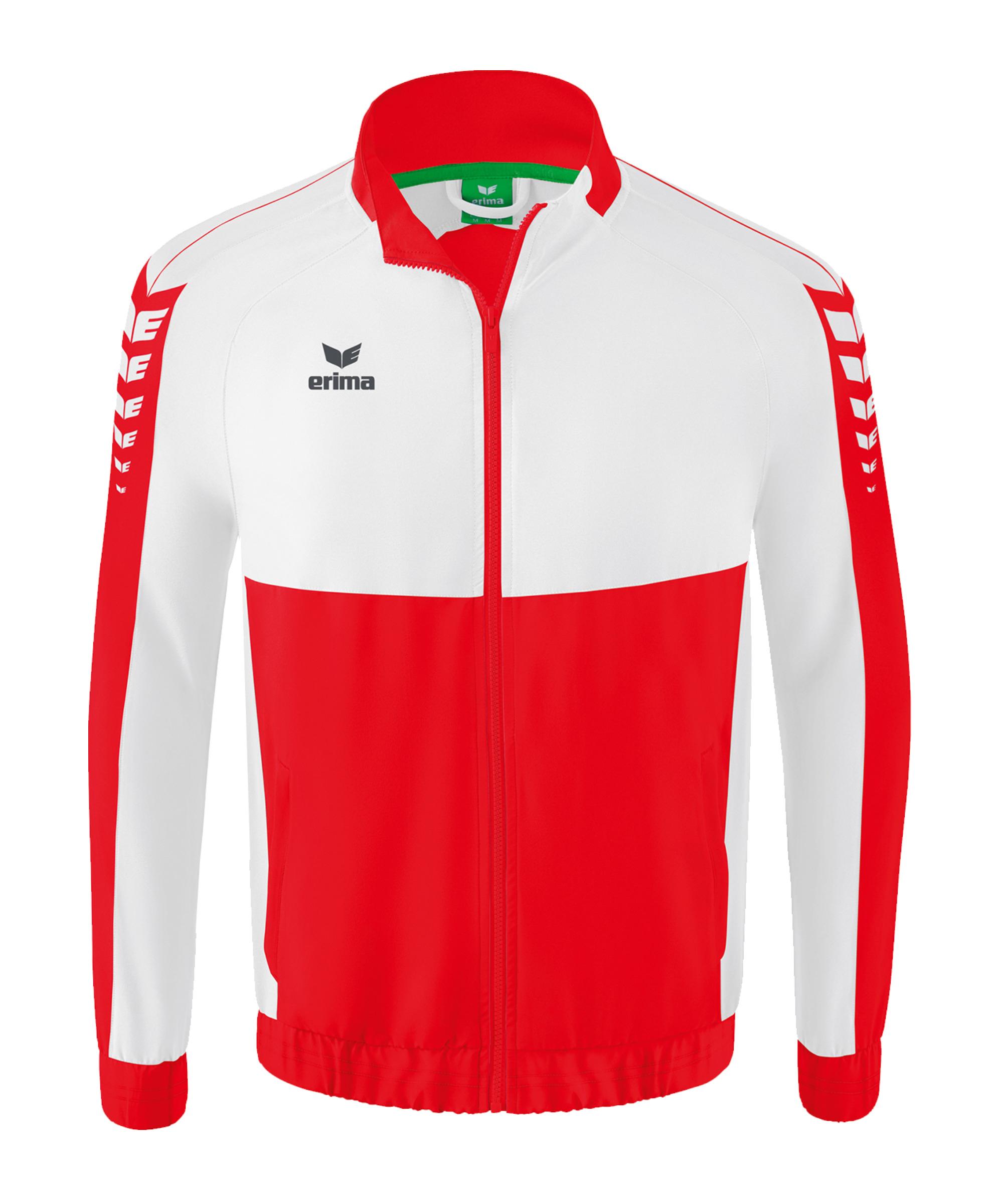 Mit dem atmungsaktiven Modell in Rot macht dein gesamtes Team eine gute Figur. Mit der Jacke aus dem Hause Erima kann man wirklich nichts verkehrt machen. Sie ist atmungsaktiv, super bequem und leicht. Hiermit hinterlasst ihr einen wunderbaren Eindruck vor und nach dem Match oder bei Präsentationen. Ein optisch schicker Stehkragen bietet dieser langärmligen Jacke optische Unterstützung. Die seitlichen Zip-Taschen schaffen zusätzlichen Stauraum für diverse Kleinigkeiten. Ein komfortabler und einfacher Verschluss der Jacke wird durch den Reißverschluss erreicht. Produktdetails: Ausschnitt: Stehkragen Langärmlig Seitliche Zip-Taschen zum Verstauen von Kleinigkeiten Eigenschaften: atmungsaktiv, super bequem, leicht Material: 100% Polyester